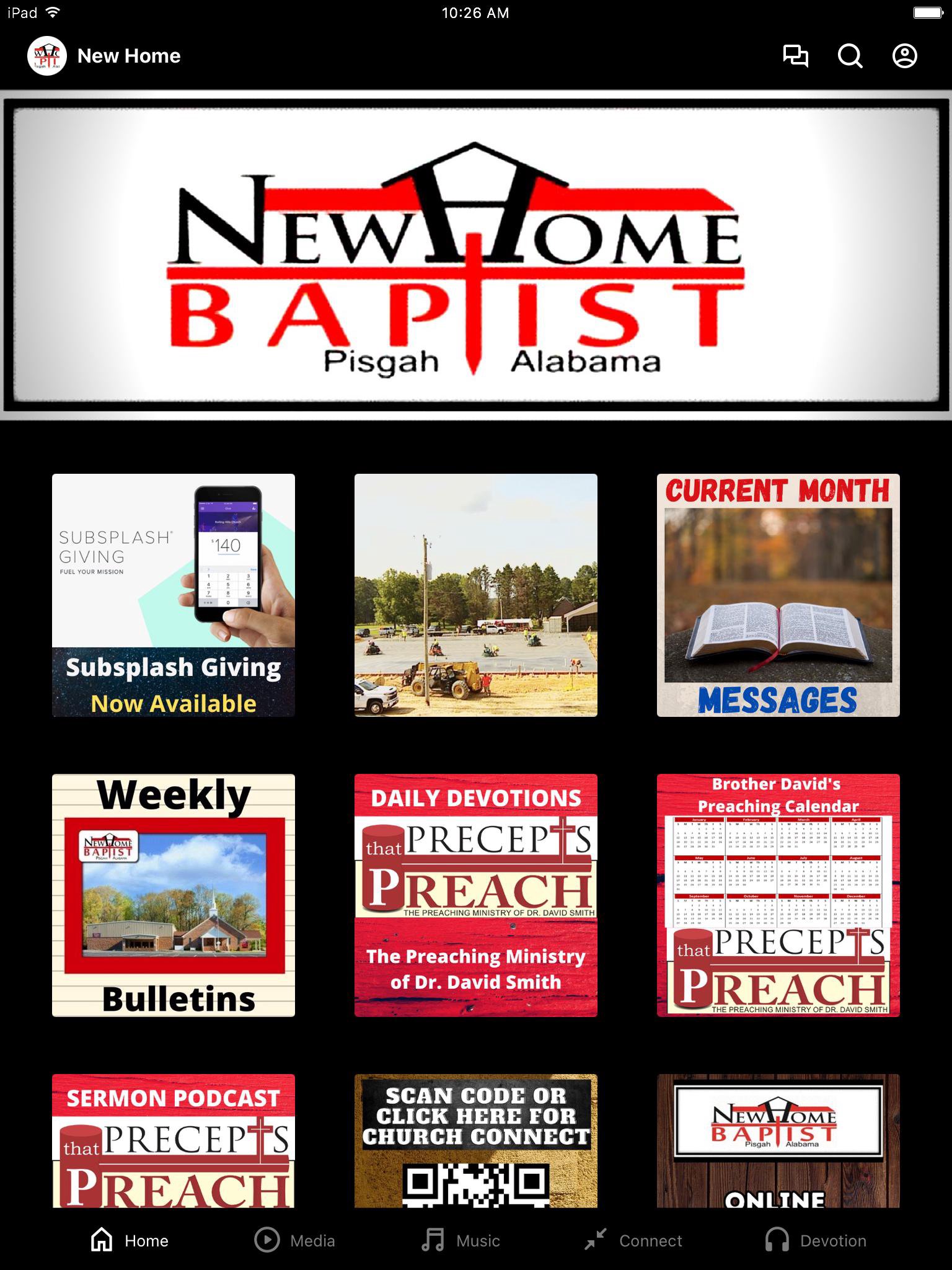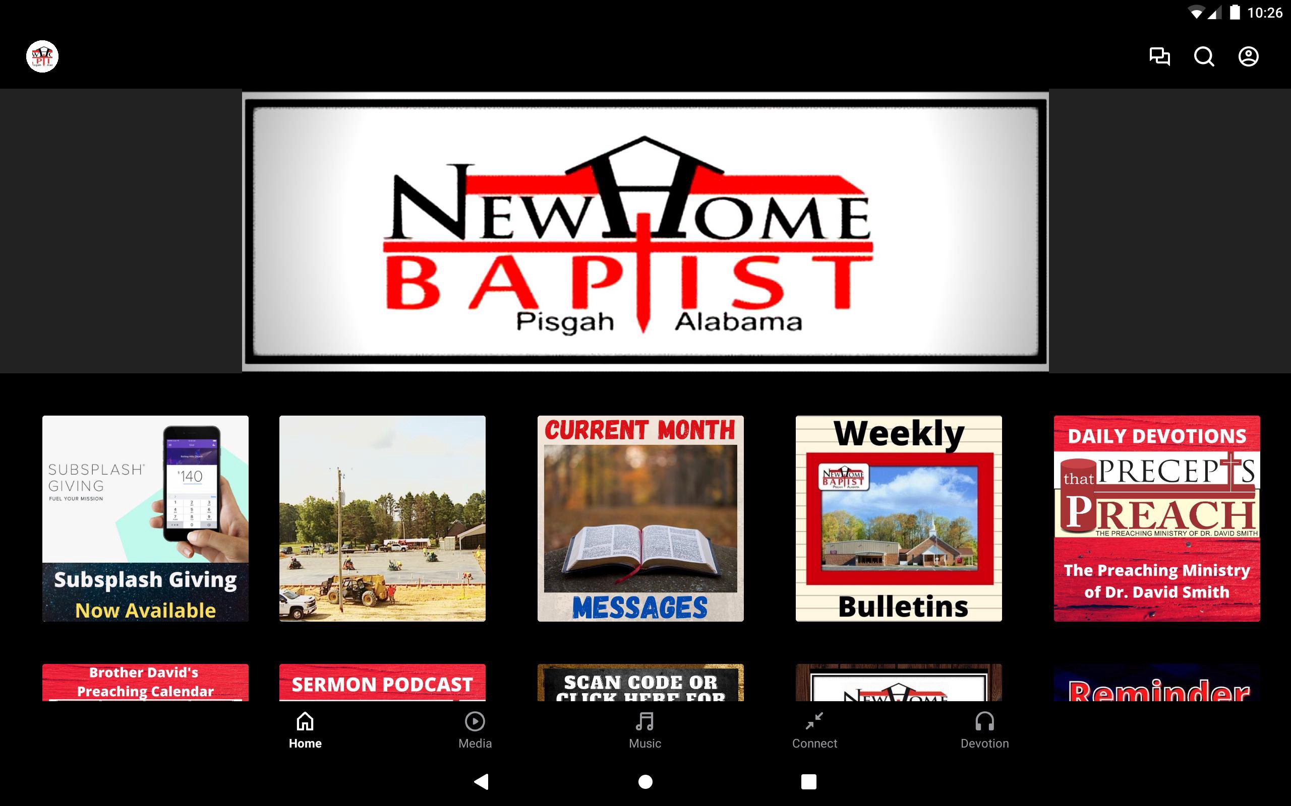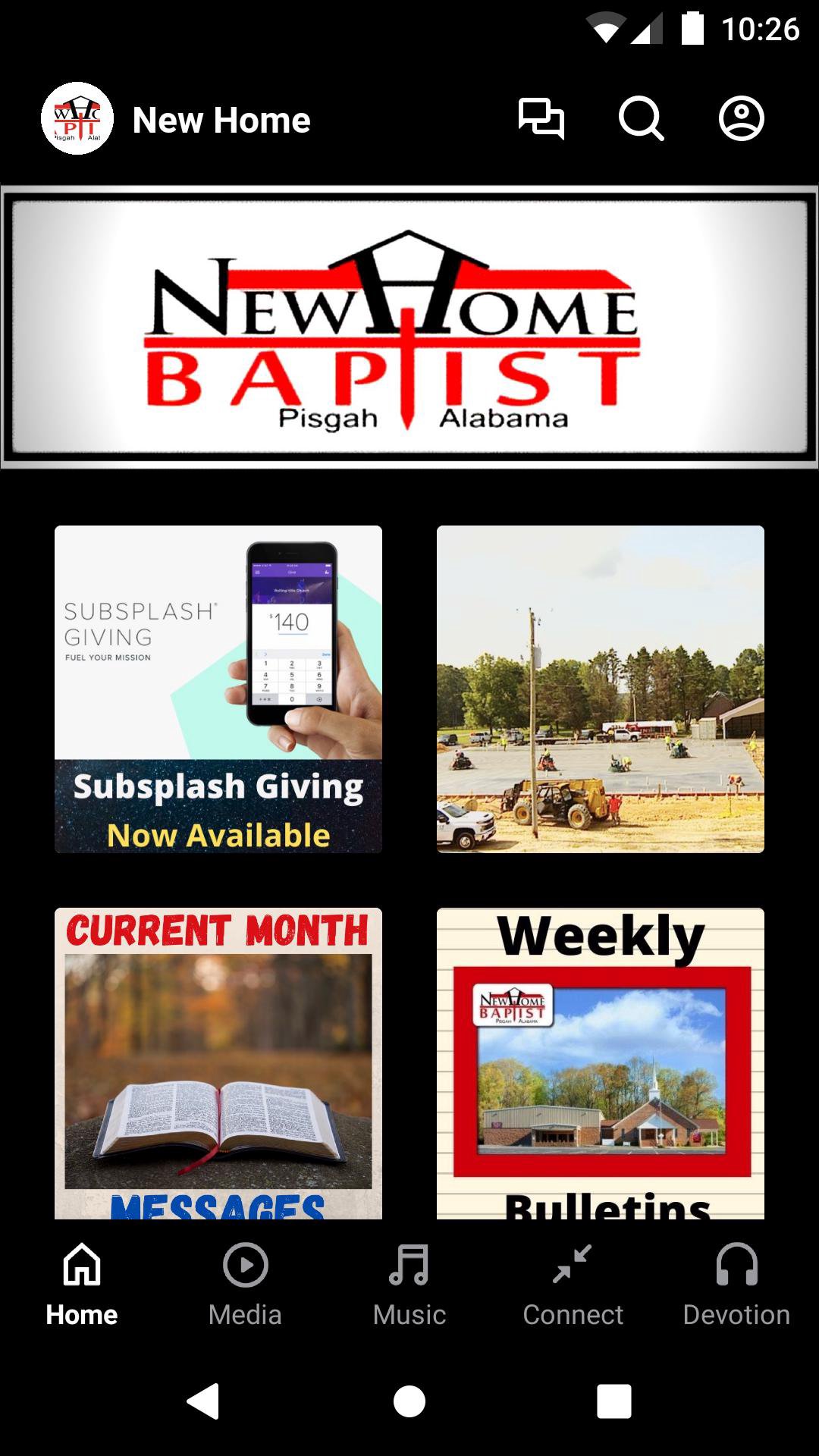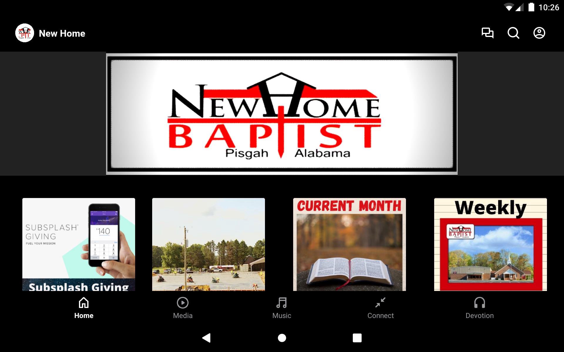 Welcome to the official New Home Baptist Church app. Stay up to date with what's going on at New Home Baptist located in Pisgah, Alabama. Now you can have instant access to New Home Baptist resources in the palm of your hand. With our church app you can watch live services or watch and/or listen to on demand recent content. You can download media resources to watch or listen at your convenience. Online giving is available within the app. We even have a Bible embedded into the app. Push notifications if enabled will keep you up to date on the latest happenings. This app is a great way to stay connected to our church anywhere you go. For more information about New Home Baptist , please visit: www.nhbconline.net