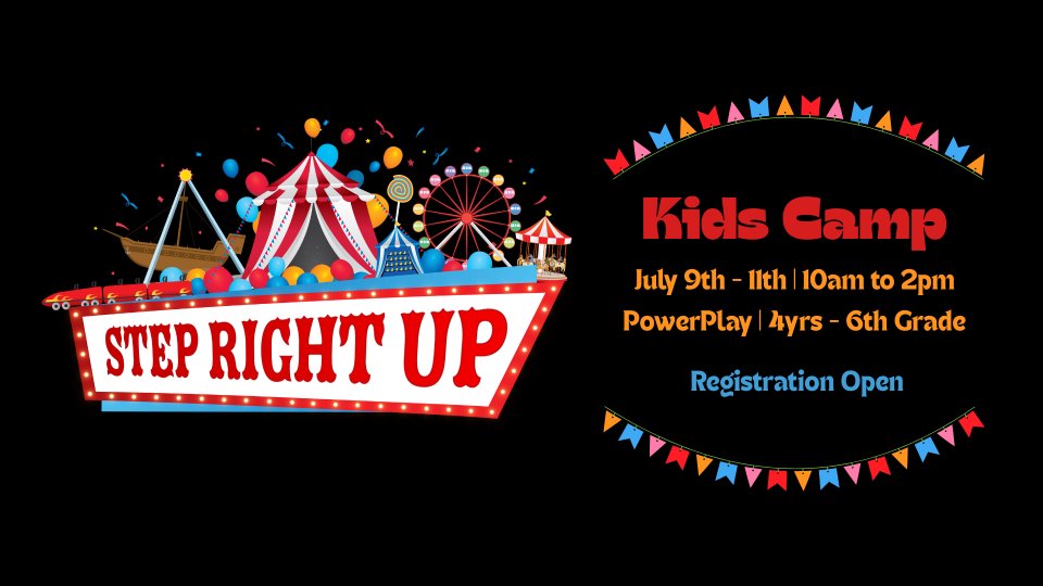 Kids age 4 through outgoing 5th Graders are invited to attend New Wine Kids Camp this summer at PowerPlay, on July 9th through 11th from 10 am to 2 pm each day. Kids will learn about God while having fun with their friends. Camp includes a t-shirt, lunch, and an hour of play each day.