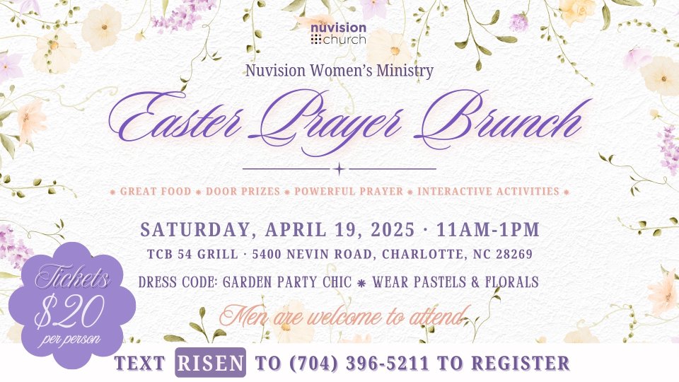 For questions or assistance, please contact the Women's Ministry team at info@nuvision.church Subject Line: "Easter Prayer Brunch"
