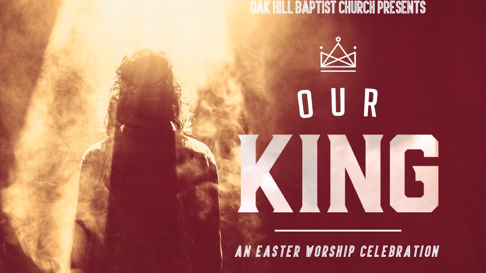 "Our King" is an 80-minute passion play performed by the worship ministry of Oak Hill Baptist Church. The play is an outreach to our church and community designed to show a scripture-based depiction of the death, burial and resurrection of Jesus Christ.