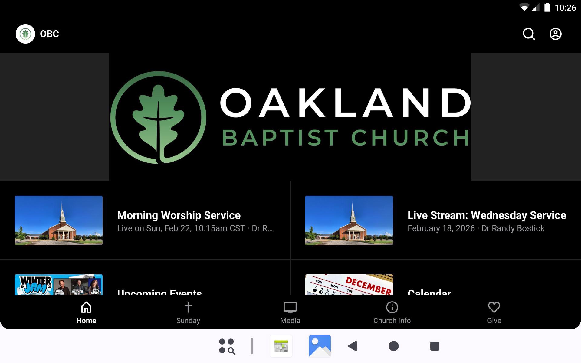 This app will help you stay connected with the day-to-day life of our church. With this app you can: - Watch or listen to past messages - Stay up to date with push notifications - Download messages for offline listening - Get the latest news and information about OBC