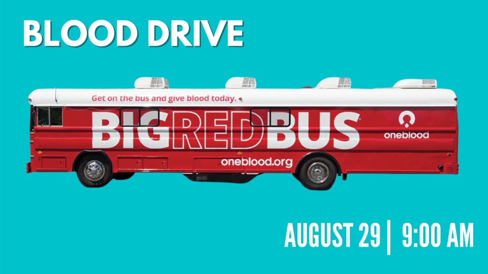The Big Red Bus will be parked on the Oasis parking lot Sunday, August 29 from 9:00 AM to 3:30 PM. Get a free OneBlood beach towel and a $20 eGift Card when you donate blood. Wellness checkups including COVID-19 antibody tests, blood pressure tests, iron count, and cholesterol screenings will be available. Walkups are welcome, but you can reserve your spot at the link below!