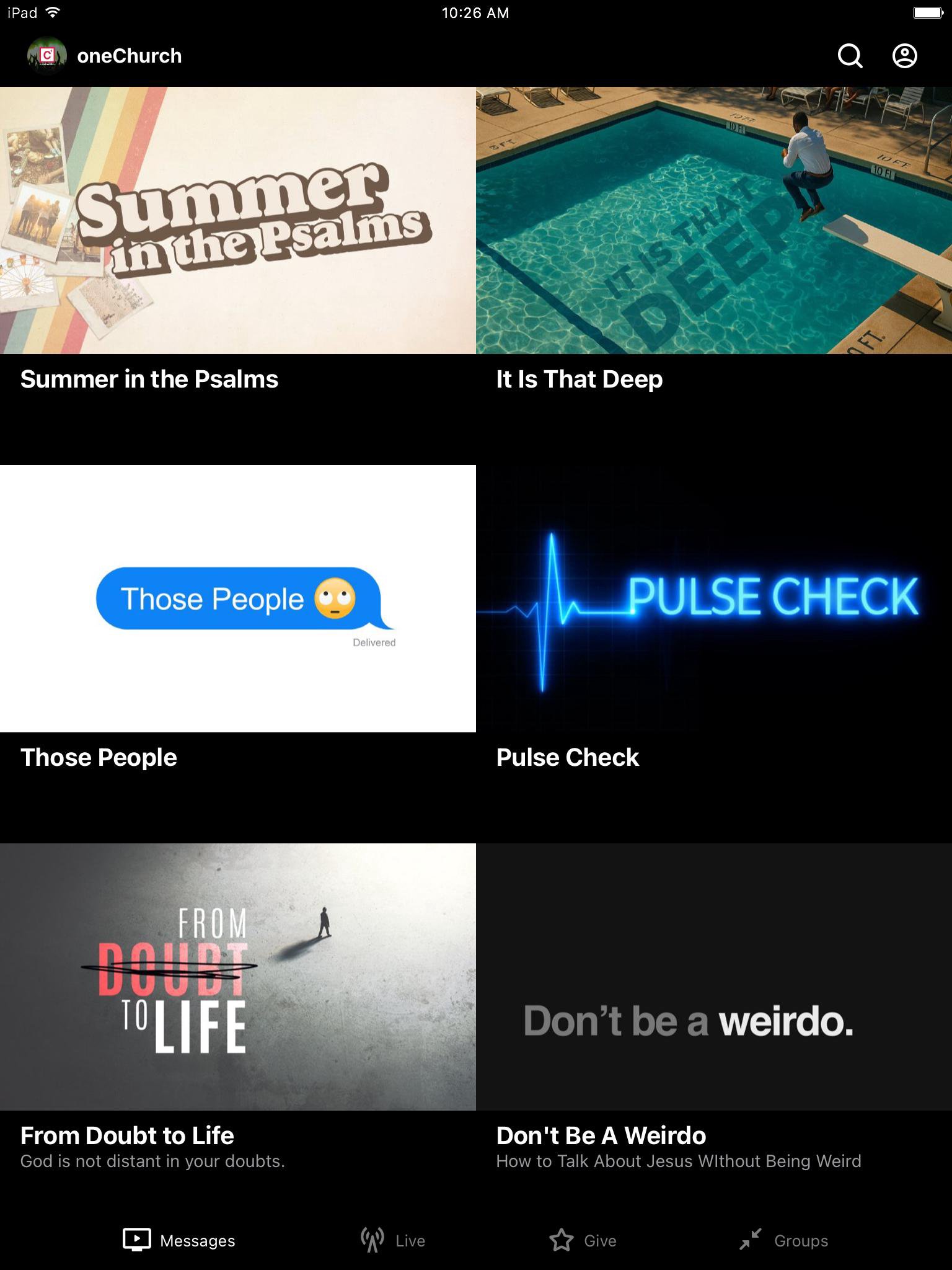 oneChurch.tv exists to lead people into a growing relationship with Jesus. This app will help you go mobile with us and keep you connected for the other 167 hours of your week!