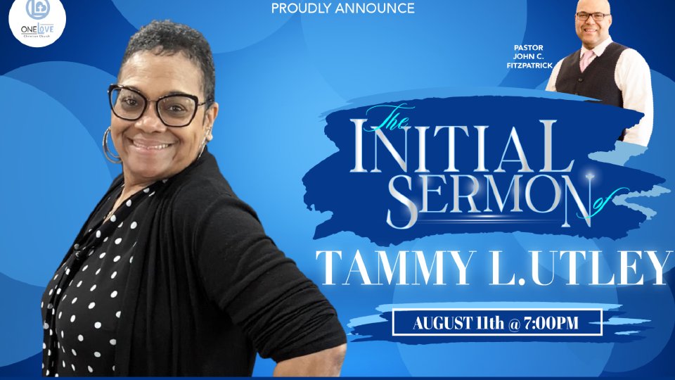 Pastor John Fitzpatrick is inviting you to the Initial Sermon Service of Deacon Tammy L. Utley on Thursday evening, August 11th at 7:00pm. The service will be held at One Love Christian Church located at 1315 Horton Road in Durham, NC. Please see flier. If you have questions or need additional information, please contact the Church Admin at 984-259-4524.
