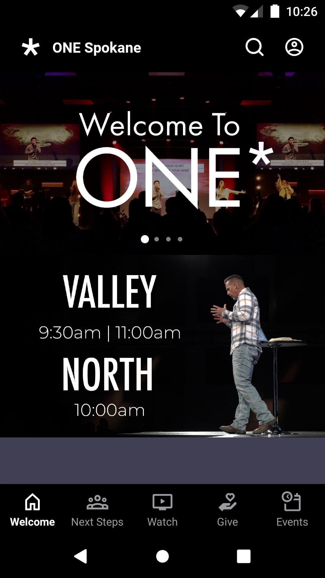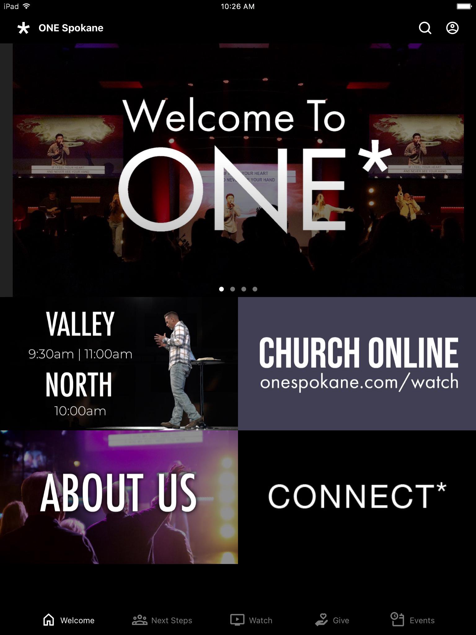 Welcome to the official ONE* app for the , touch, and ! Here you'll find all the latest event news, media updates such as church news and message series as well as general info about ONE* and ways you can get connected! You will also be able to immediately share content with friends and family via Twitter, Facebook or email right from within the app. For more info about ONE*, check out http://www.onespokane.com/ The ONE* App was developed with the Subsplash App Platform.