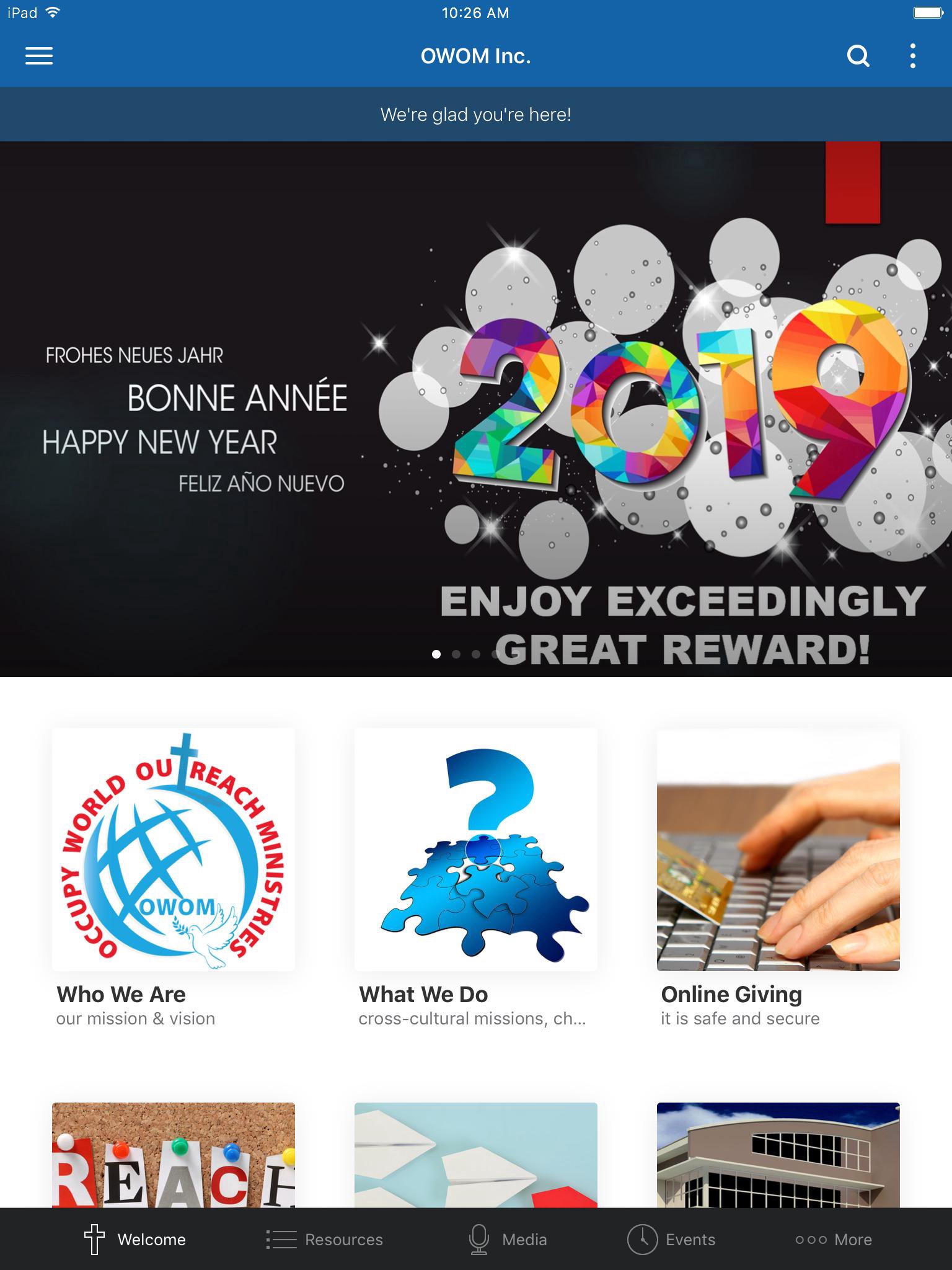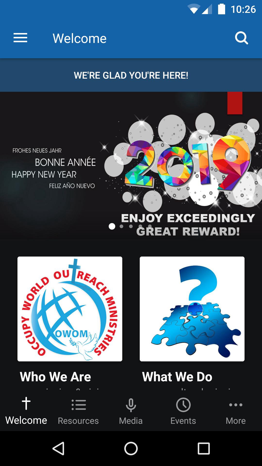 Welcome to the official Occupy World Outreach Ministries app. This app will bring you in touch with what God is doing through our ministry and mission work across continents, and also share with you different areas you may want to get involved with us. You will also find great sermons, inspiring articles and content you can share with friends via Facebook, Twitter, or email. For more information about Occupy World Outreach Ministries, please visit: http://www.owomglobal.org/ The OWOM Mission App was created with the Subsplash App Platform.