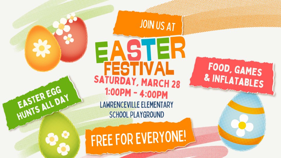 Join us for a wonderful day of celebration and outreach to the families of our church & community at our Easter Festival hosted at Lawrenceville Elementary School! This is a wonderful opportunity for our church to welcome our community as we celebrate the Good News! Sign-up to let us know how you would like to serve by registering now! (You can also sign-up to provide cookies for our Cookie Walk via this form!)