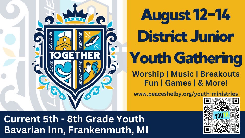 Holly is also looking for adult leaders to join us at this exciting event. Please email her with your interest. hnelson@peaceshelby.org. She will send you the Supportive Adult Leader Expectations and Application.