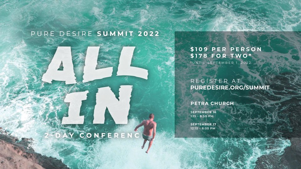 Starting Friday, September 16, join hundreds of wholeheartedly committed men and women for the 2022 Pure Desire Summit! Continue the conversation about sexual purity and learn how past trauma affects relationships. Hear from keynote speakers and connect with others while you learn alongside them. This 2-day Summit is for anyone who's led or been a part of any Pure Desire group or anyone who is passionate about helping others seek sexual purity. Petra Church is excited to announce that we will be a Host-Site for this Friday and Saturday event. Register now to reserve your seat!
