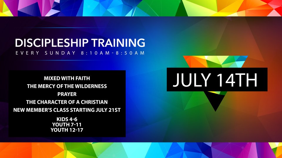 Discipleship Training Classes will resume beginning July 14th. Classes this session are:
