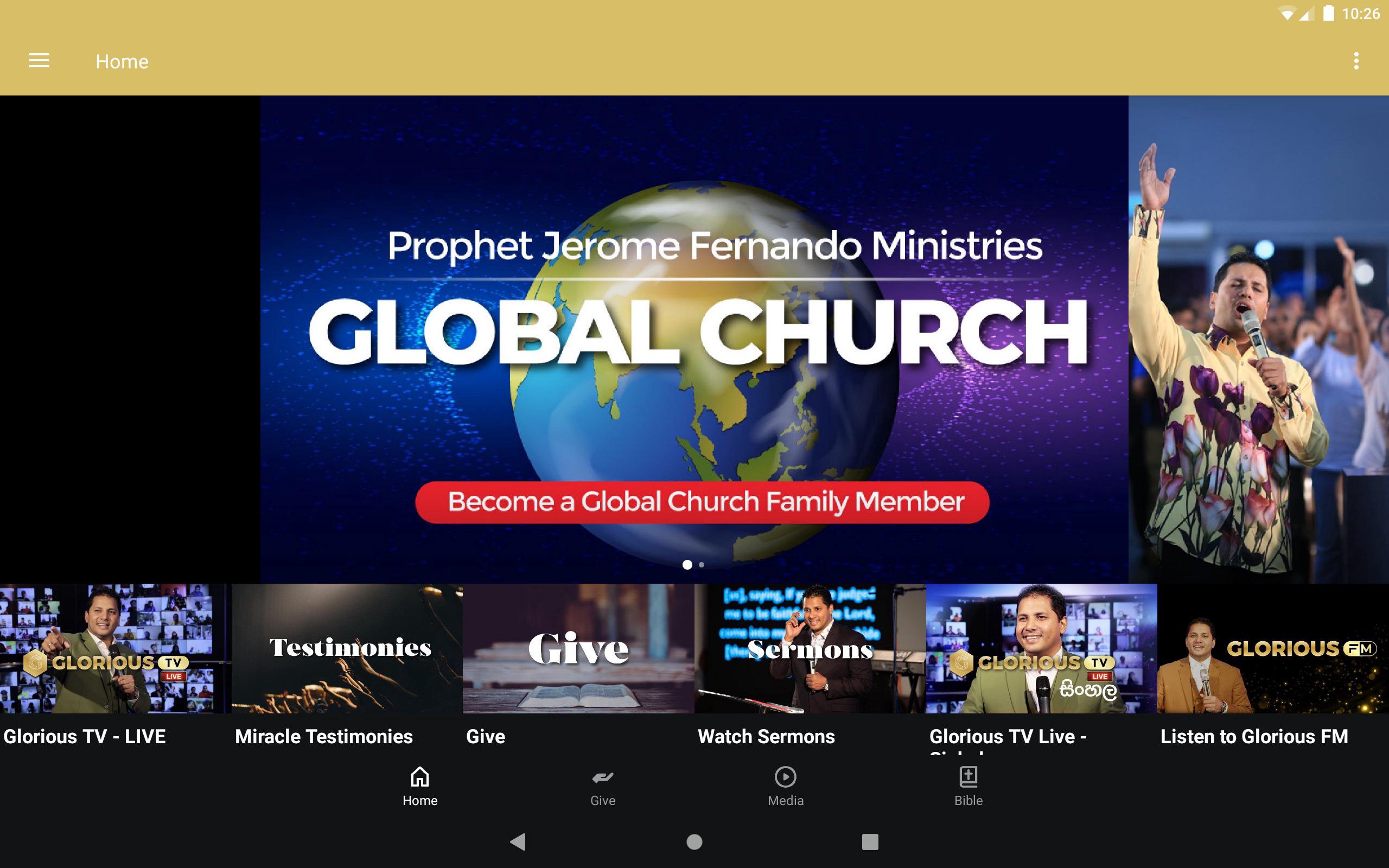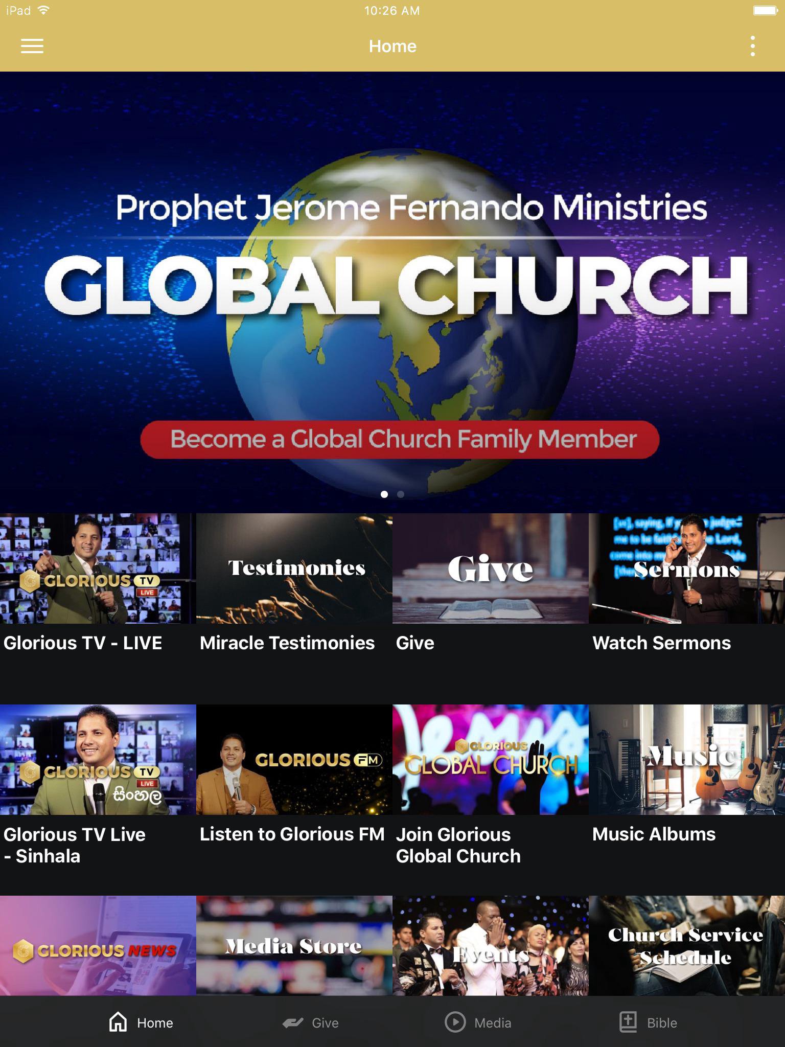 Glorious TV – Experience the Word, Worship, and the Prophetic Move of God Glorious TV is the official Christian TV app of Prophet Jerome Fernando Ministries (PJFM), created to bring the transforming power of God’s Word, worship, and the prophetic into your daily life wherever you are in the world. Designed to keep you spiritually nourished connected, and inspired, this app helps you experience God’s presence beyond the walls of a church service. Whether you’re seeking powerful sermons on demand, live worship, or testimonies of healing and miracles, Glorious TV is your 24/7 gateway to encouragement and revelation. Stay connected to a global prophetic movement that is transforming lives through the power of Jesus Christ. KEY FEATURES OF GLORIOUS TV Live Broadcasts - Join services, conferences, and special events in real time. Be part of the prophetic move of God as it unfolds. Whether it’s a Sunday service, healing night, or international gathering, Glorious TV ensures you never miss a moment. Latest Sermons & Teachings - Access powerful Christian sermons online from Prophet Jerome Fernando. Every teaching strengthens your faith, unlocks your destiny, and provides practical wisdom for victorious living. Worship Music & Live Praise - Stream uplifting worship music that shifts atmospheres. Perfect for prayer, study, or creating a Spirit-filled environment wherever you are. Glorious FM – 24/7 Christian Radio - Tune in to Christian radio online anytime. Glorious FM streams sermons, worship, devotionals, and inspirational programs around the clock. Testimonies of Healing & Miracles - Watch and read Christian testimonies of healing, deliverance, breakthroughs, and transformation. These real stories prove that Jesus is the same yesterday, today, and forever. Partner with the Ministry - Sow into the vision and join a prophetic ministry touching lives worldwide. Partnering with Prophet Jerome Fernando Ministries helps spread the Gospel and impact generations. Stay Informed - Receive ministry news and announcements. Be the first to know about conferences, healing festivals, broadcasts, and online church events. ABOUT PROPHET JEROME FERNANDO Prophet H.E. Ambassador Rt. Rev. Bishop Dr. Jerome Fernando is a prophetic voice and divine oracle to the nations, anointed to unveil the Person of Jesus Christ with clarity and power. Entrusted with a distinctive global mandate, he carries the living Word of God with full expression across continents, cultures, and countless dialects. His ministry transcends borders and barriers and is defined by undeniable demonstrations of the Gospel’s power, marked by extraordinary signs, wonders, miracles, and prophetic exploits, igniting faith, transforming lives, and ushering multitudes into a tangible encounter with the risen Christ. WHY CHOOSE GLORIOUS TV? Glorious TV is more than an app—it is your online church experience, available anytime and anywhere. Every feature is designed to draw you closer to God, build your faith, and connect you with a global family of believers. If you are searching for: • A Christian TV app with live services • Easy access to sermons on demand • Ministry broadcasts with miracles • Healing and prophetic testimonies to strengthen faith • A 24/7 Christian radio app • A way to partner with a global ministry …then Glorious TV is your one-stop app for all this and more. Download Glorious TV today and experience the Word, worship, and the prophetic at your fingertips. Stay connected, stay empowered, and step into the supernatural life God has for you. Learn more at: www.prophetjerome.com