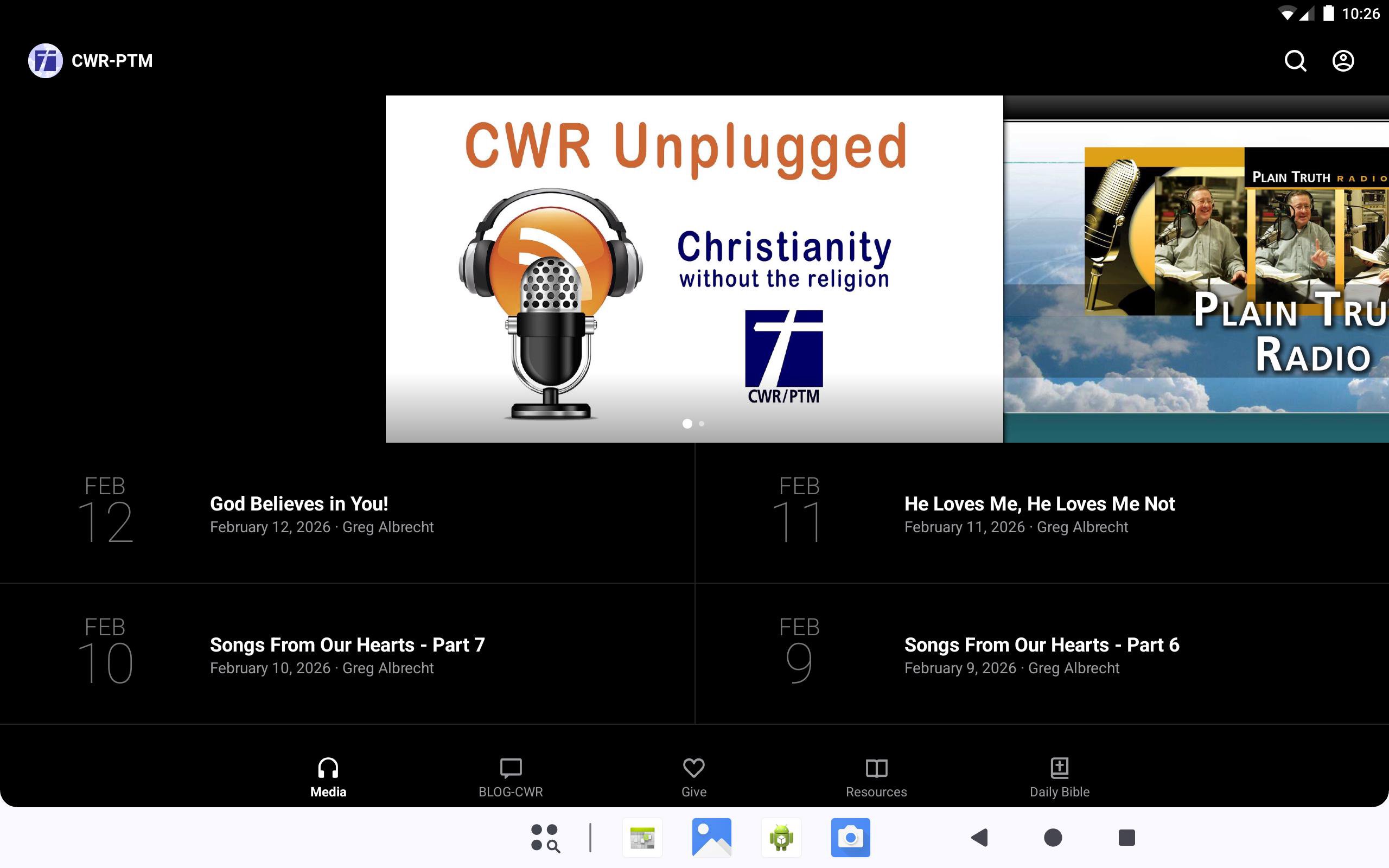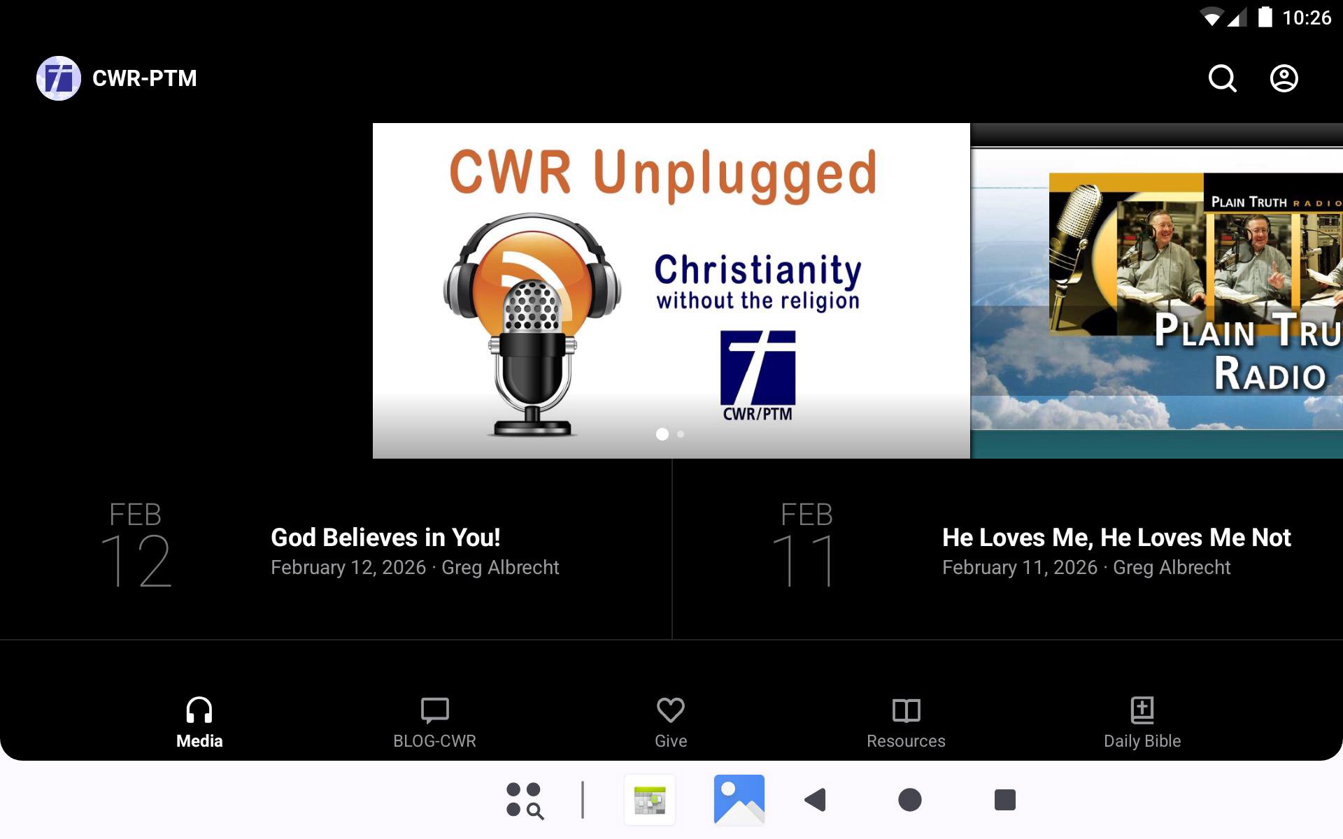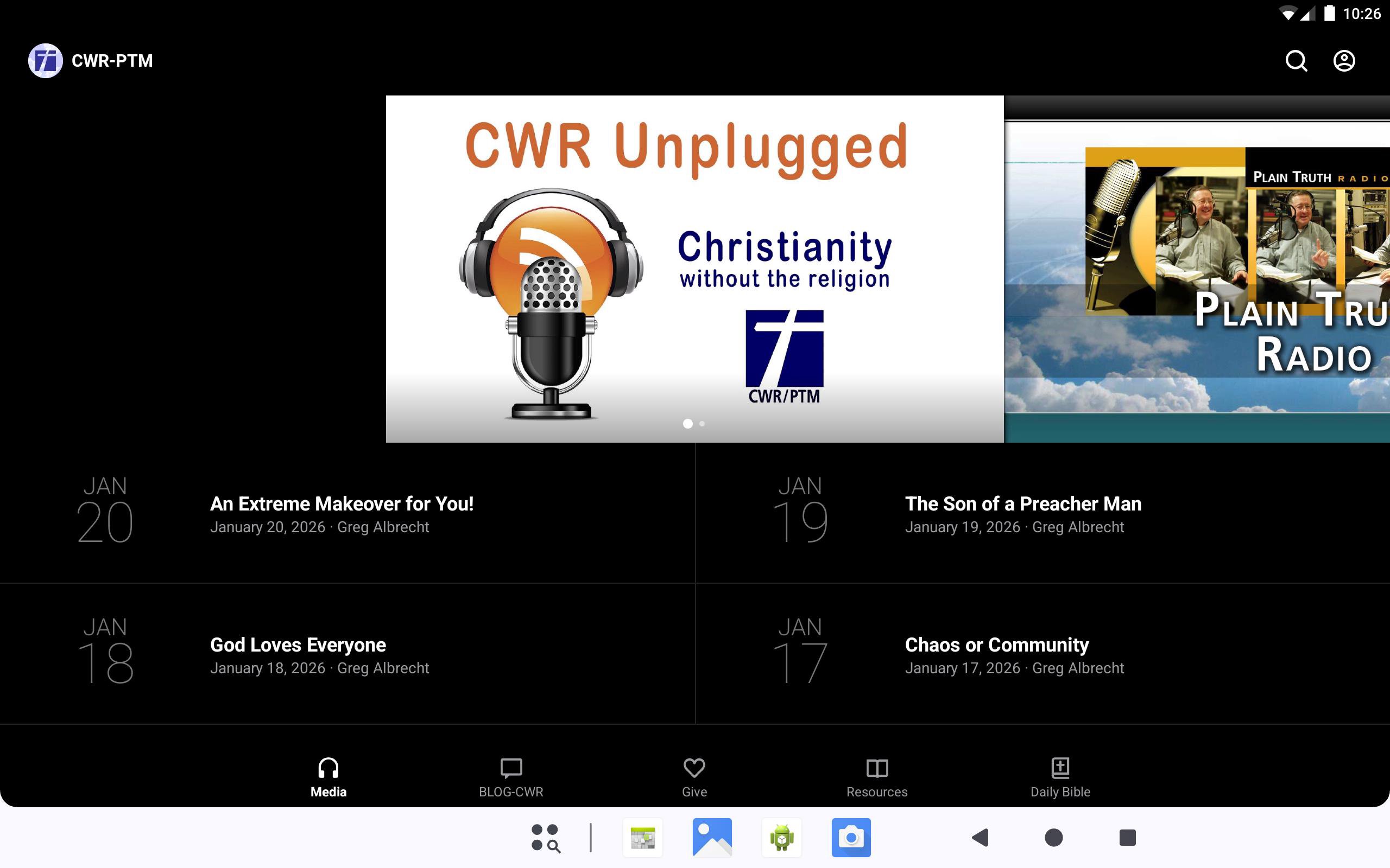 Welcome to the official Christianity Without the Religion and Plain Truth Ministries App. This FREE App proclaims authentic Christianity without the religion. Our work is Christ-centered, based on God's amazing grace, giving hope to those burned out by legalistic religion. When you download this app you will have access to the daily and weekly audio and video messages of Greg Albrecht. Plus access to Christianity Without the Religion magazine and our CWR Video magazine. Our weekly Bible Survey and Blog are also available. For more information about Christianity Without the Religion and Plain Truth Ministries, please visit www.ptm.org. The CWR/PTM app was developed with the Subsplash App Platform