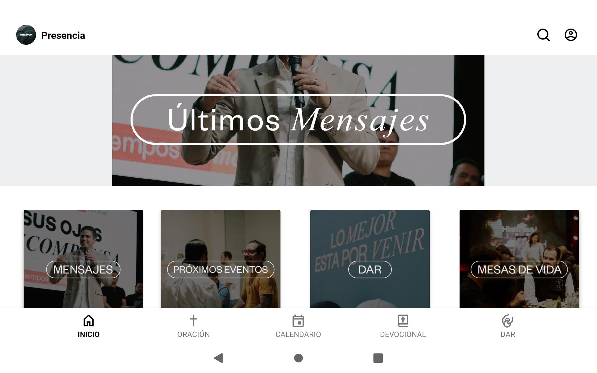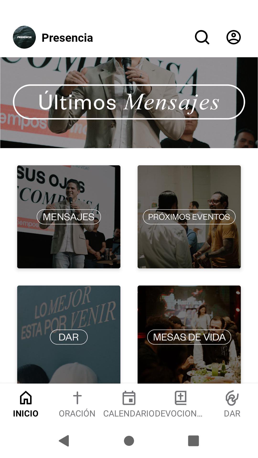 En nuestra app encontraras todos nuestros mensajes, nuestros proximos eventos y a parte tendras recordatorios de todo lo que esta sucediendo en Presencia.