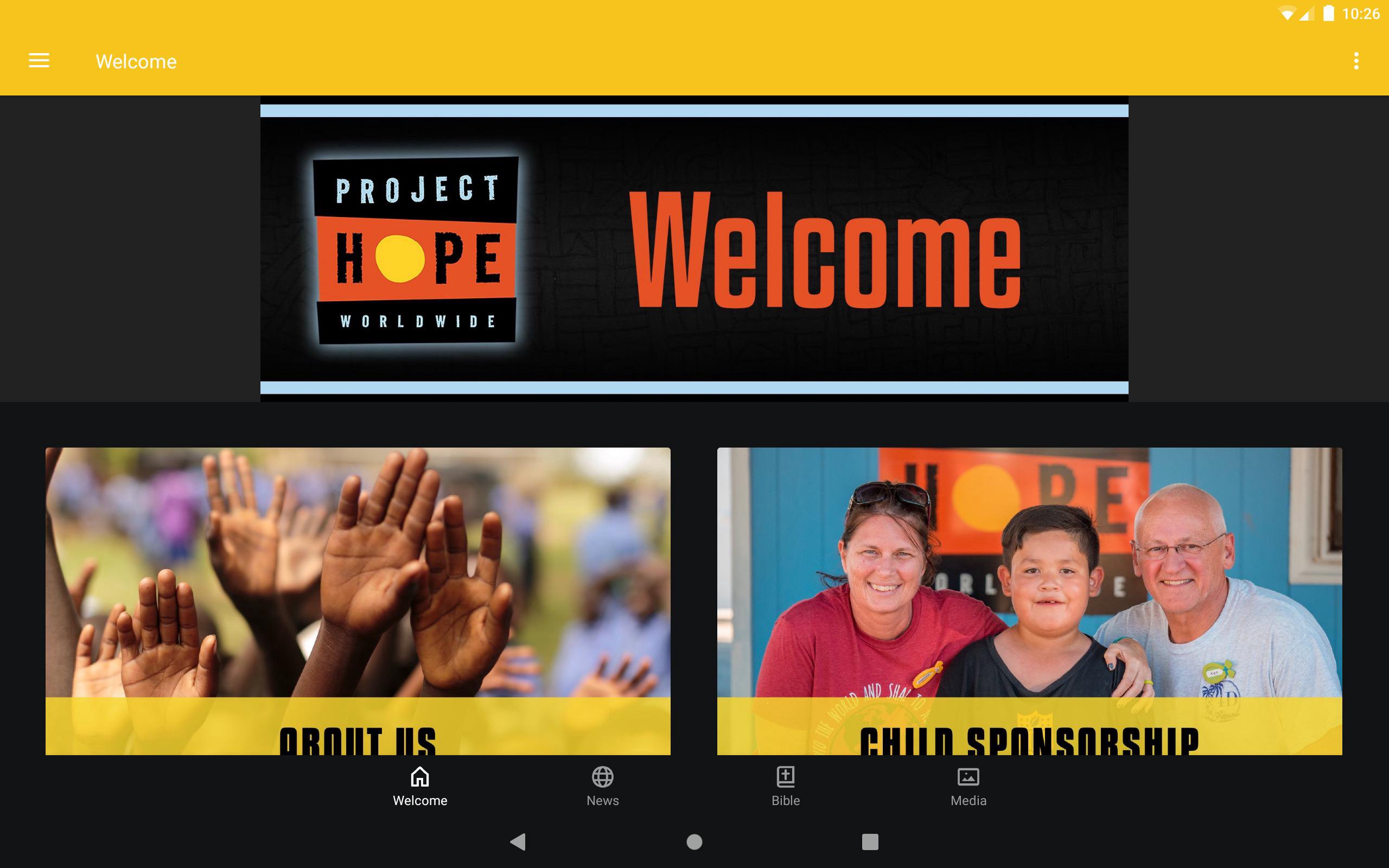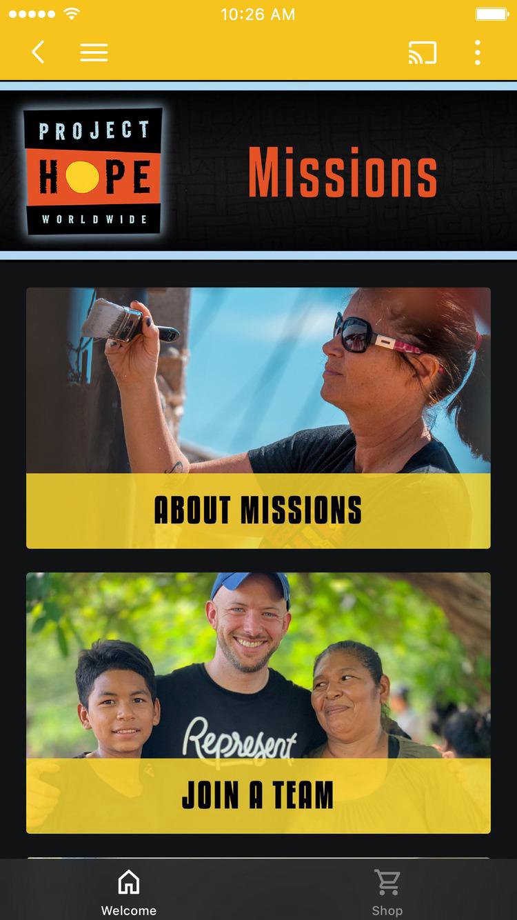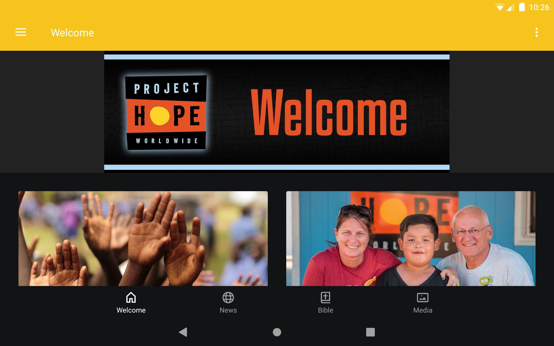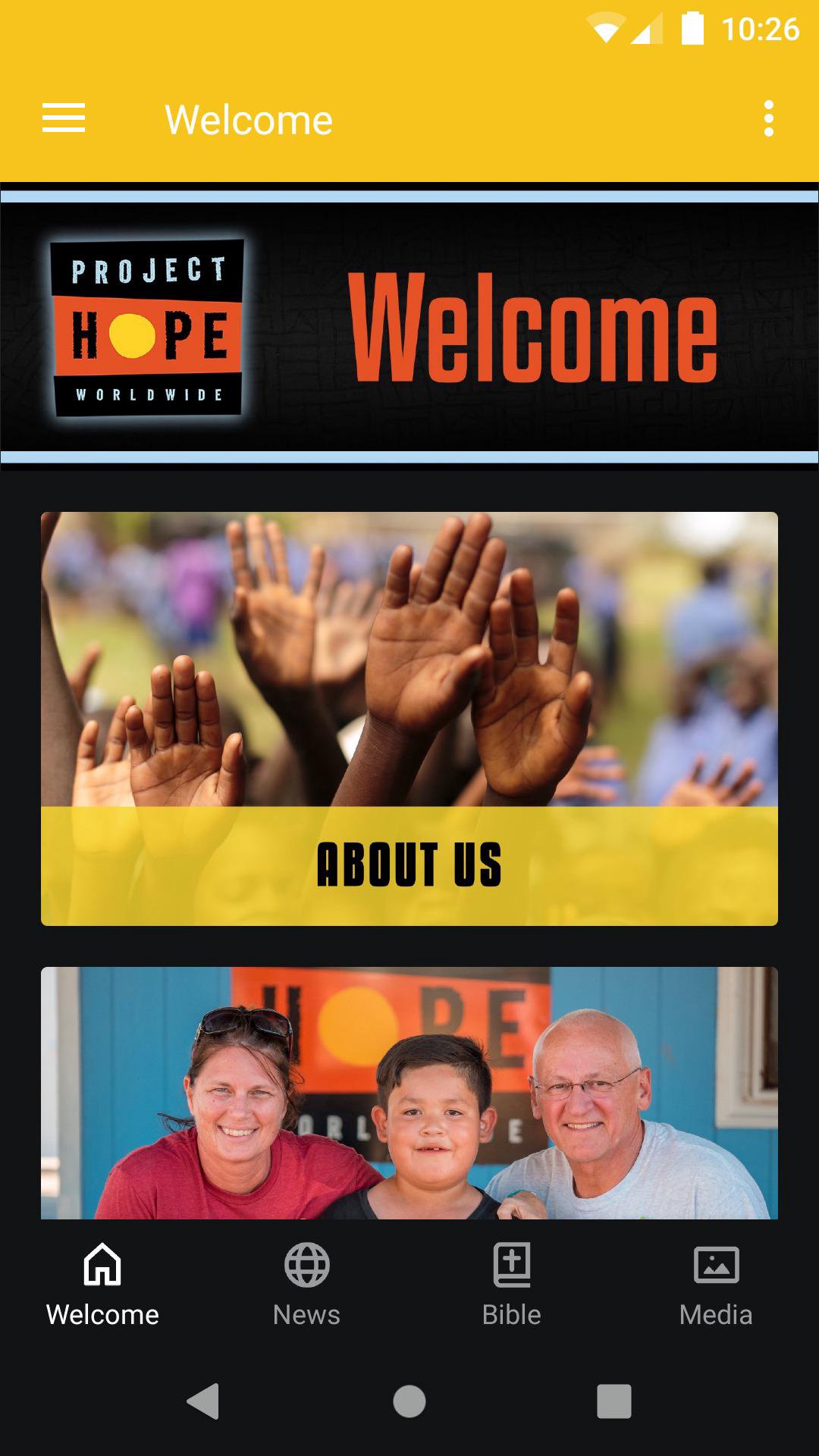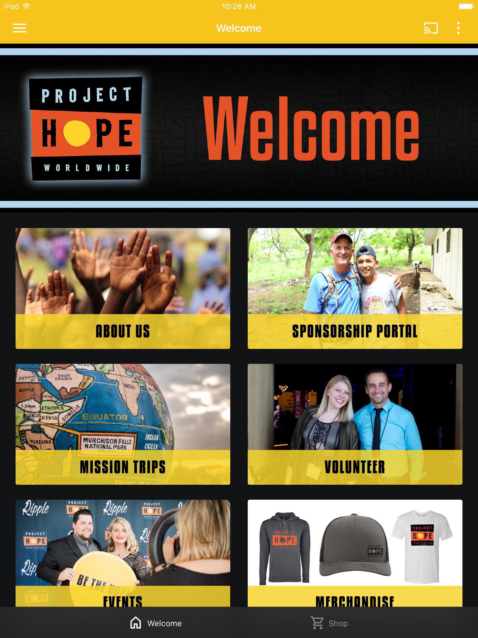 This app will help you stay connected with Project Hope Worldwide's Mission to restore hope to the world's most vulnerable children. With this app you can: - Connect with our mission - Get more involved - Write your sponsored child - Sign up for Mission Trips - Support Missionaries - See what's new at each Hope Project