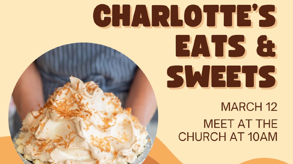 RSVP by calling the church office at 501-664-3600, signing the Reservation book at the Welcome Desk or let us know below. We will meet at the church at 10AM for our lunch reservation at 11AM at Charlotte's Eats and Sweets in Keo.
