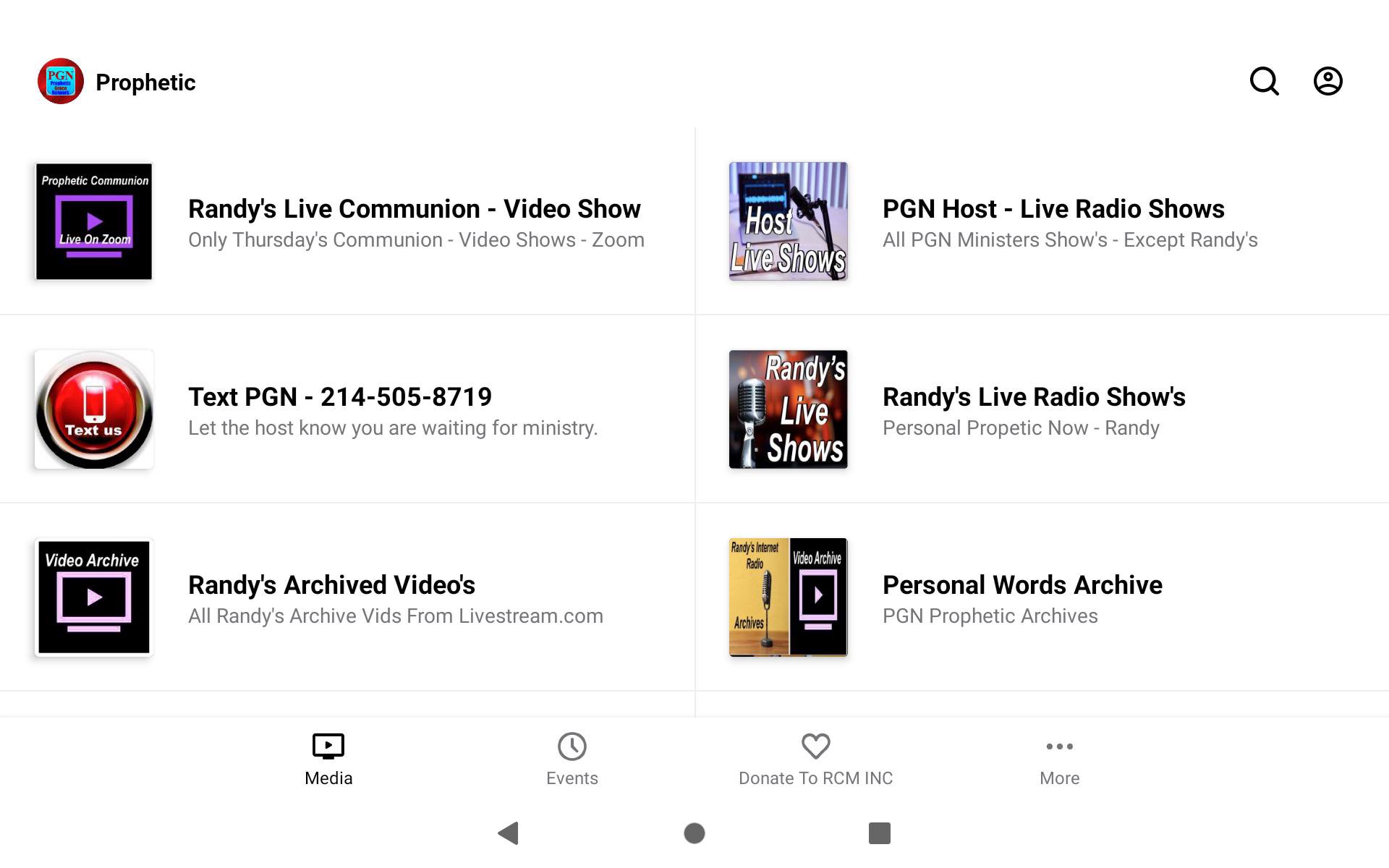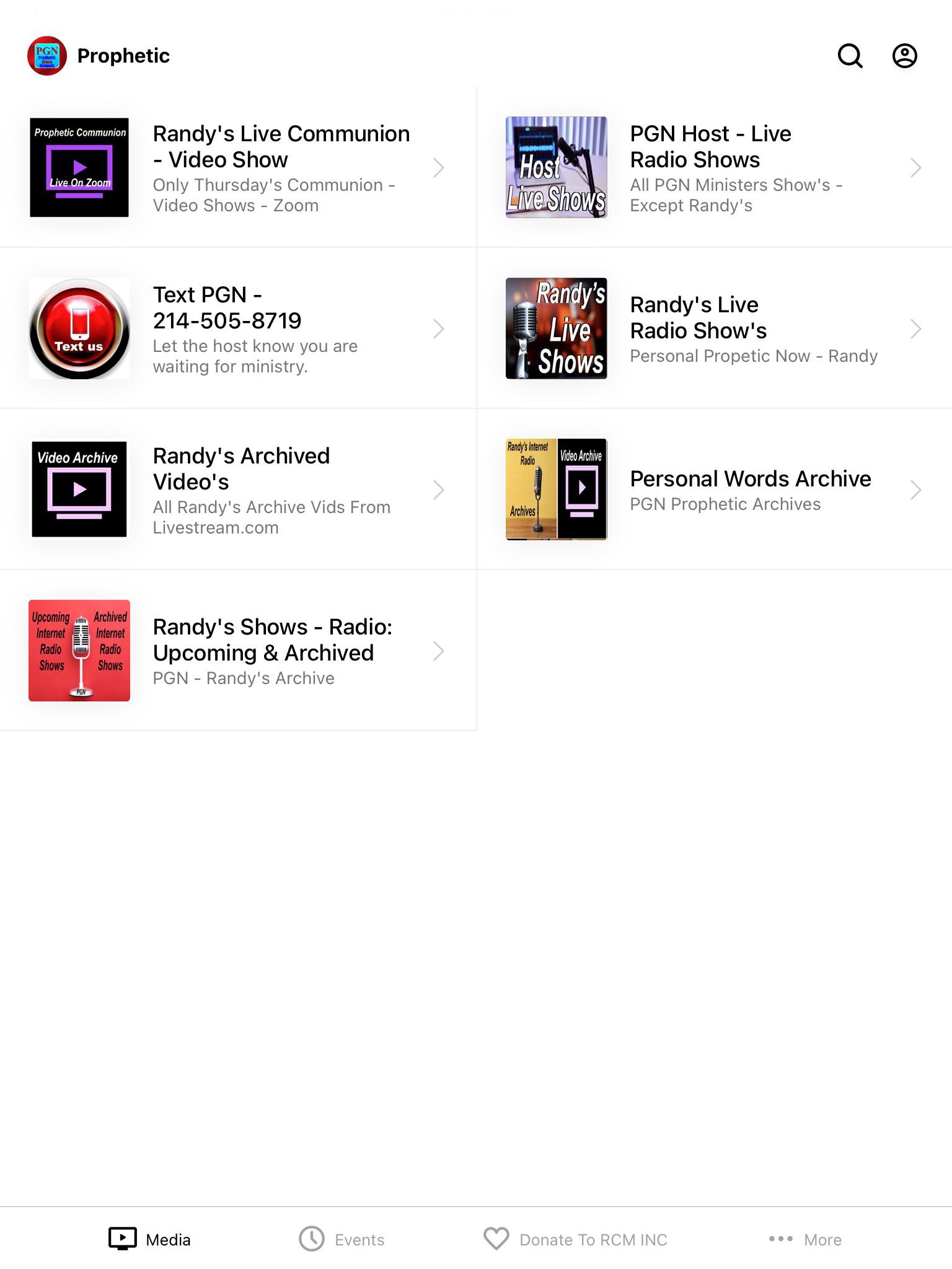 Randy’s Prophetic Shows Every Monday, Tuesday, Wednesday and Thursday 8pm to 12 midnight CST To Speak to Randy personally Call 432-888-8050 ID: 10071007# for your personal prophetic word. ALSO Watch and Chat by Live Steam Video: YouTube - Facebook etc. Randy’s Monday & Tuesday Prophetic Teach & Talk To Callers Randy's Wednesday Prophetic Every caller and every person from the Live Video Feed (YouTube - Facebook etc) Chat your first name. All personal prophetic word are archived on your favorite video platform. Randy’s Thursday Prophetic Communion Service Prayer over Offerings Text Randy/PGN at 214-505-8719 to let Randy Chandler know you are waiting. Enjoy!