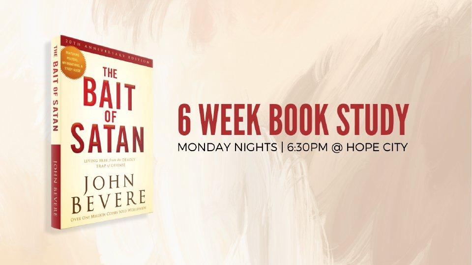 Join us at Hope City Church for a transformative six-week book study on "The Bait of Satan" by John Bevere. Starting Monday, June 3rd, we will gather each week at 6:30 p.m. in the Student
