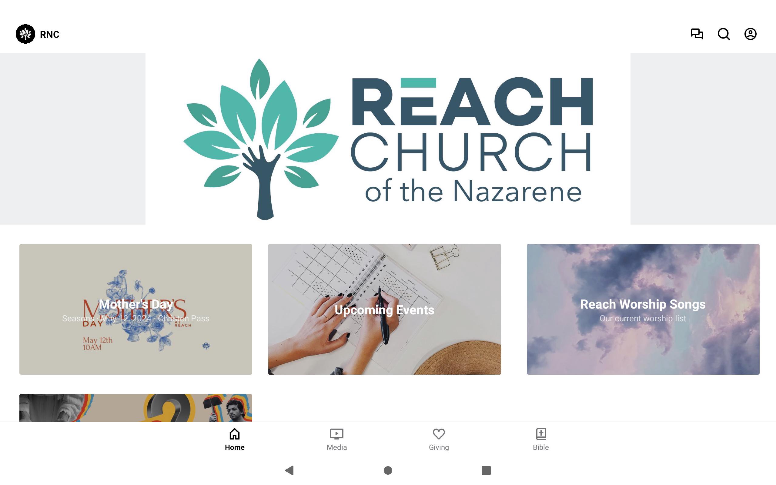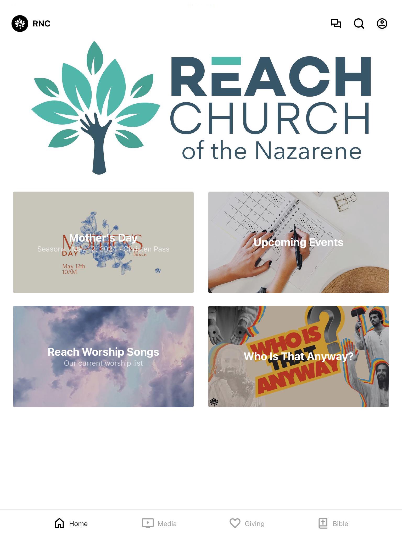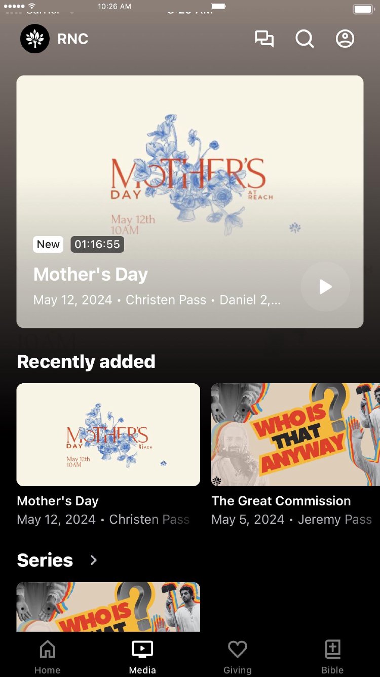 Our goal is that this app allows you to be in the loop with all that is happening at Reach. It will give you access to our live stream, past services, registration for upcoming events, and the opportunity to give digitally right here on this platform.