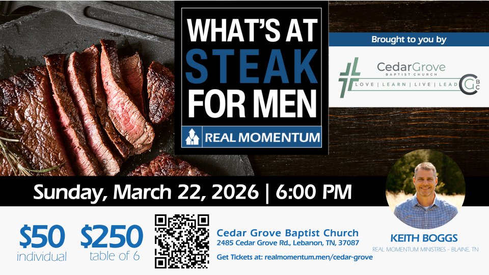 There is much at stake! Gather some men from your local community or workplace and join the Snellville Christian Church, and REAL MOMENTUM for an empowering steak dinner and challenge focused on Helping Men Win. All men and boys 12+ are encouraged to attend this impactful event.