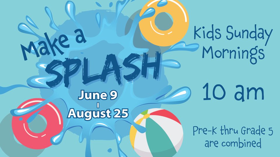 Kids will Make a SPLASH this summer as they learn what it means when Jesus says He is the Living Water. Through engaging worship songs, Bible stories, and snacks, kids will learn how these stories point to salvation through Christ alone and how we are all invited to come know and follow Jesus!