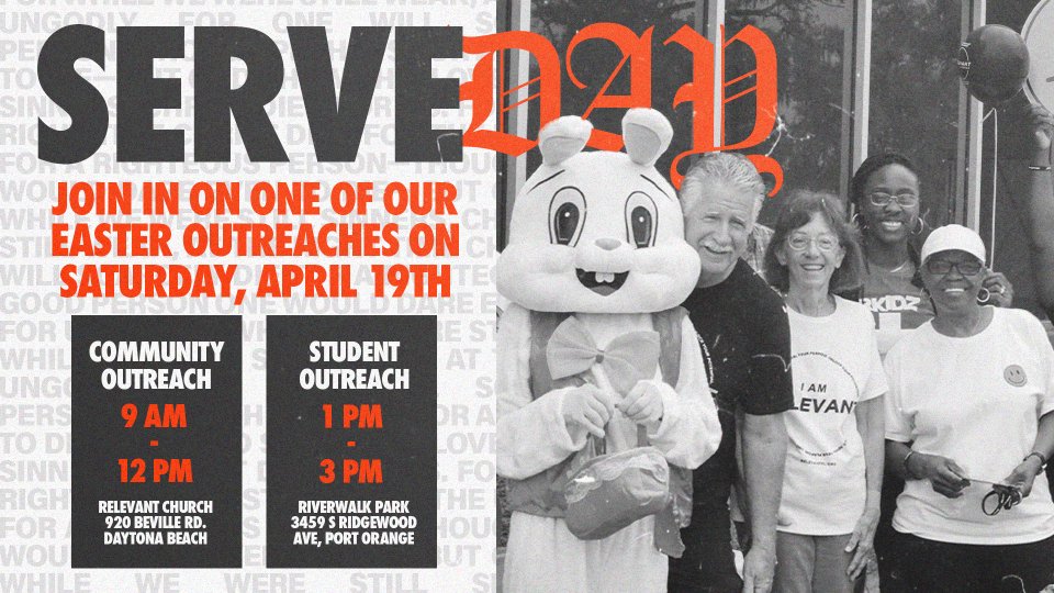 Join us as we Build Our Community and head out to invite people to Easter at Relevant on Saturday, March 16th! To participate in an outreach event, simply join us at one of the locations below: 1️⃣ Relevant Church from 9:00am - 12:00pm 2️⃣ Student Outreach from 1:00pm - 3:00pm at Riverwalk Park (riverwalk park