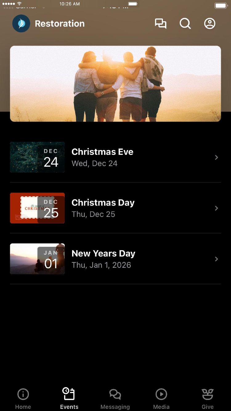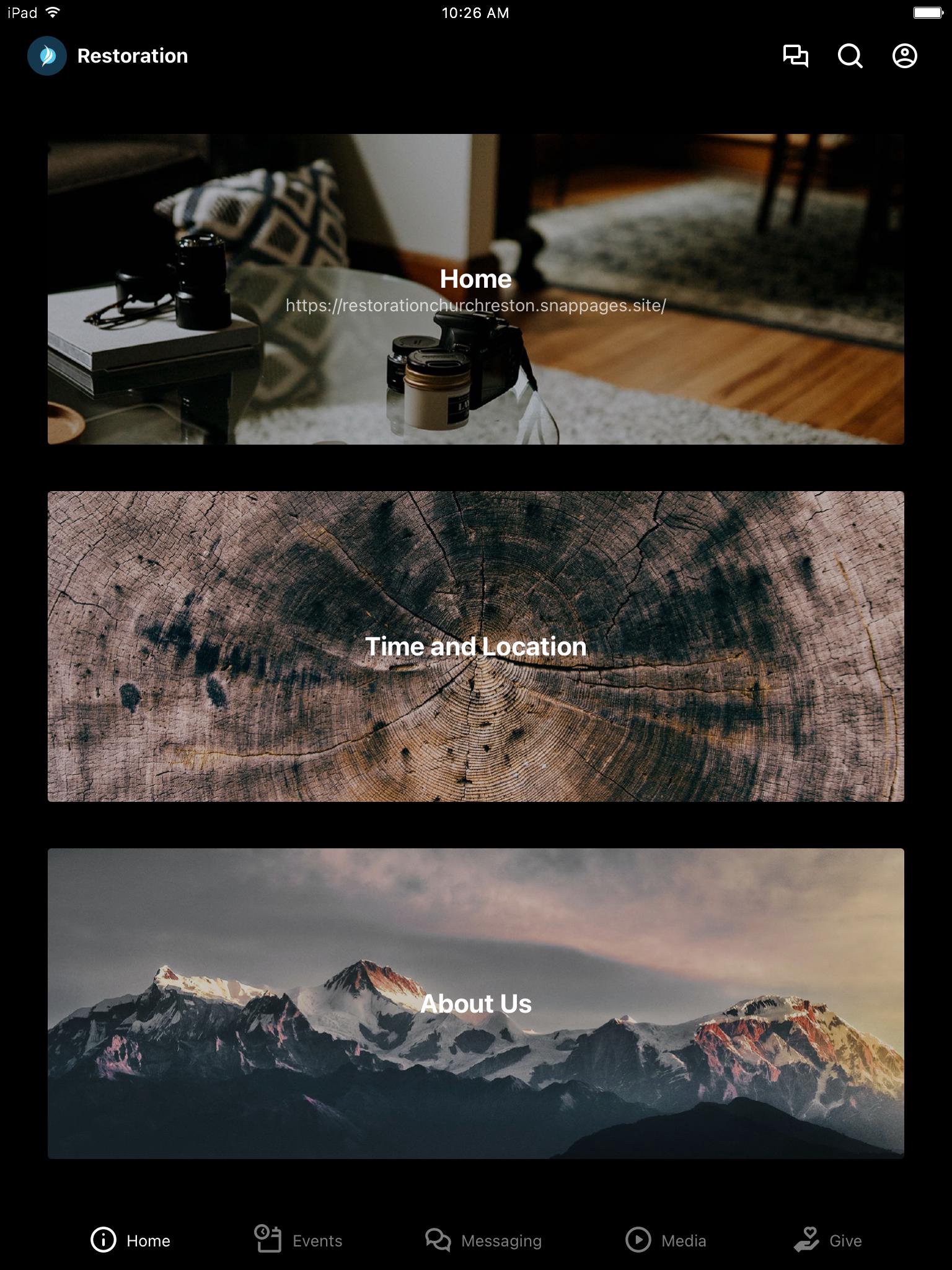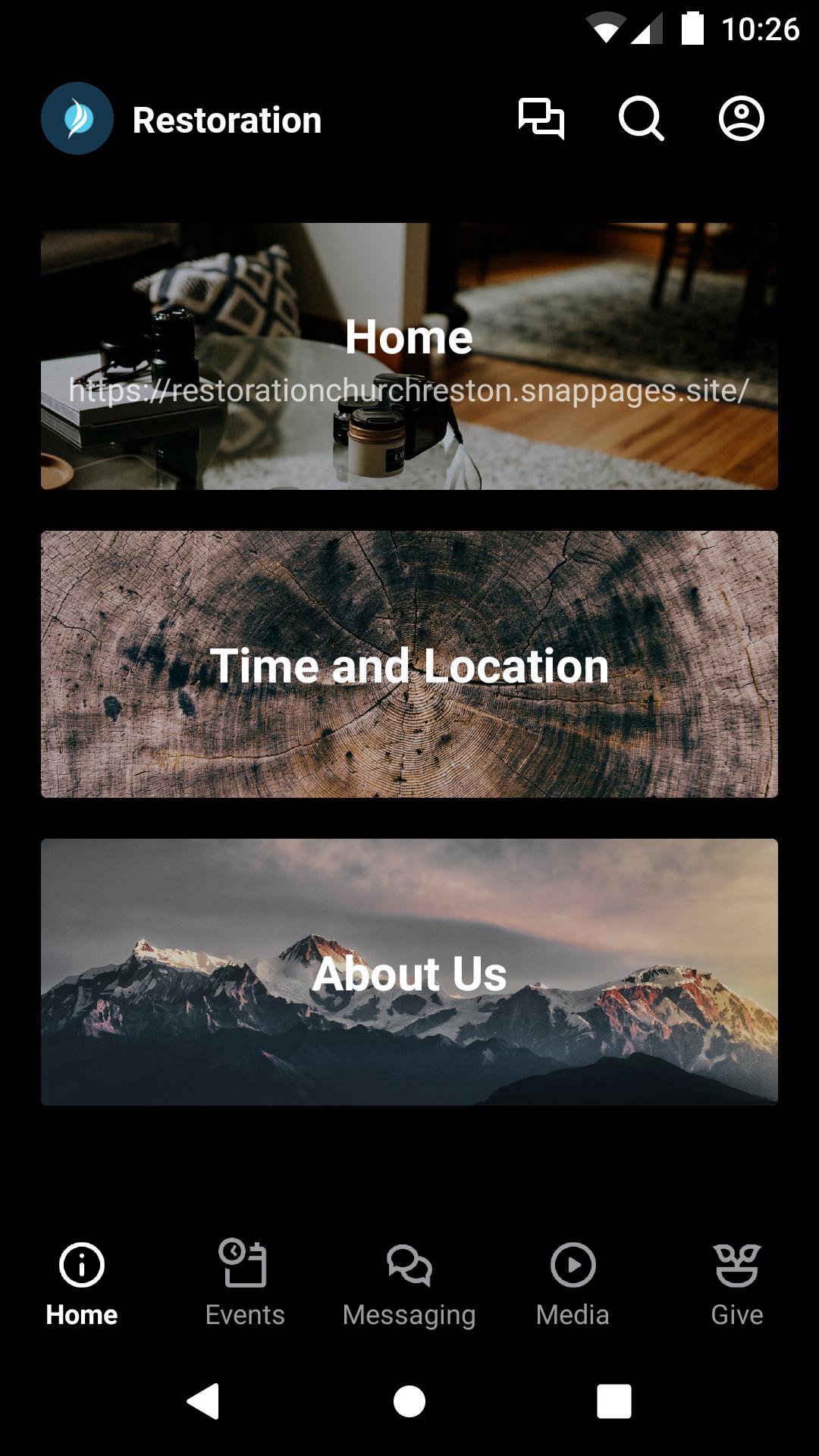 This app will help you stay connected with the day-to-day life of Restoration Reston. With this app, you can watch or listen to past sermons, stay updated with push notifications, read the Bible, and see our upcoming events.