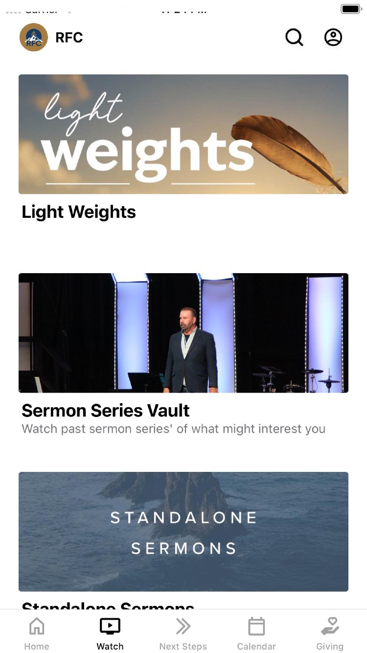 Restoration Fellowship Church app features sermons, upcoming events and online giving.