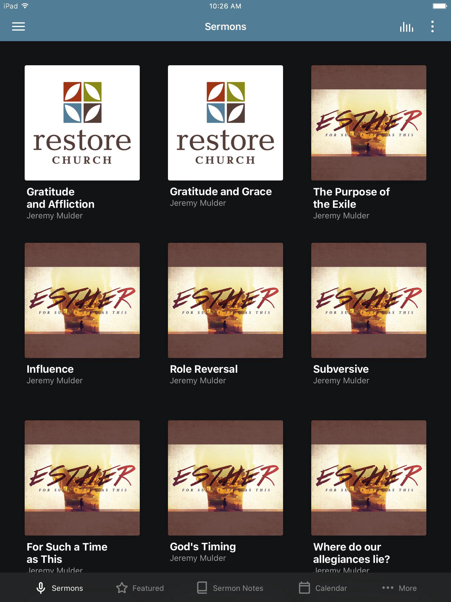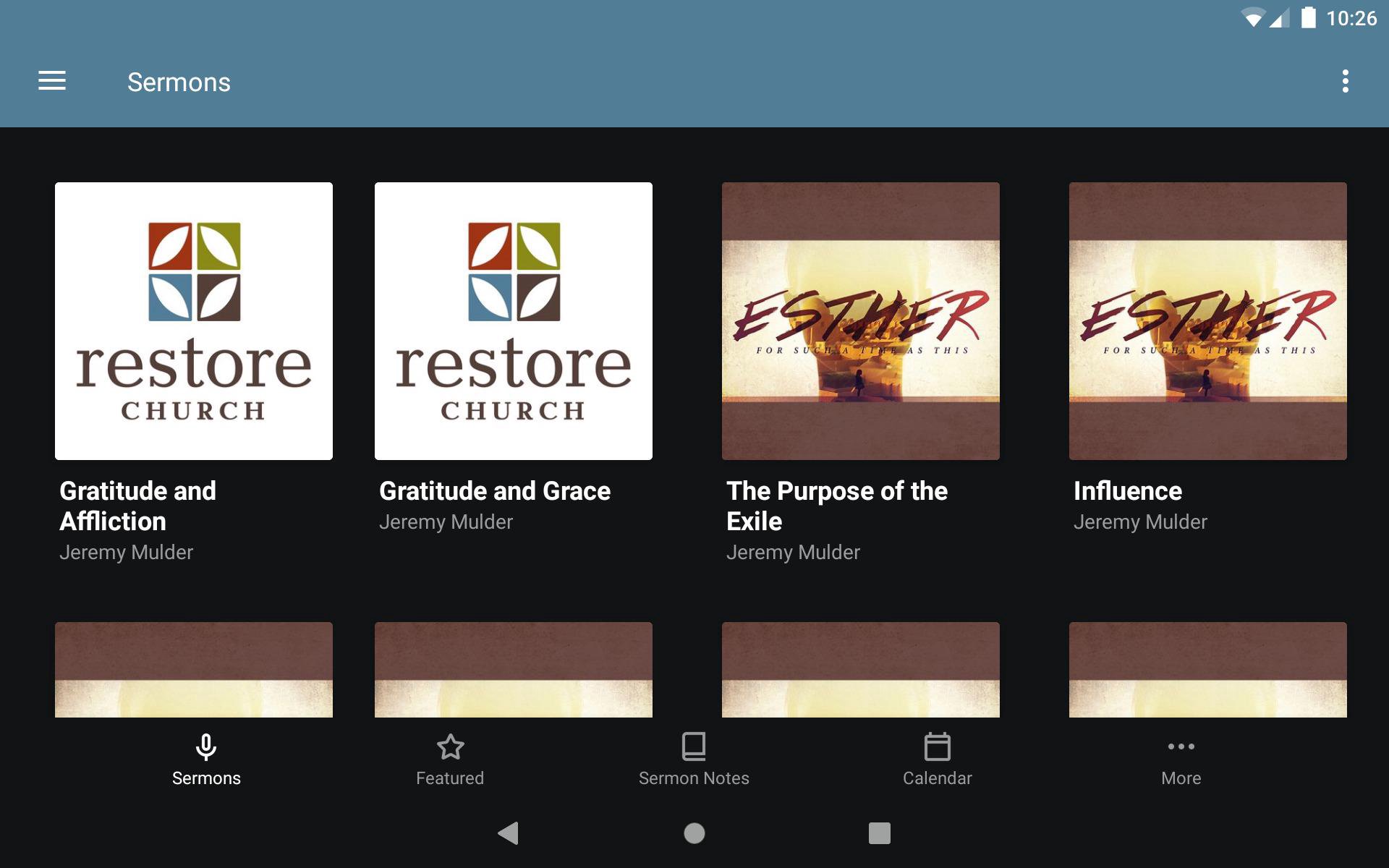 Welcome to the official Restore Church app for mobile. This is your one stop shop for all of Restore's content, including music, sermons, blog posts, and more. Get push notifications of important messages from Restore. Share your favorite media on Twitter or Facebook, or email it to your Grandma. Listen or watch on wi-fi or 4G/LTE. For more information on Restore Church, visit http://www.restoreworship.org. Restore is a member church of the Acts 29 Network. The Restore Church App was developed with the Subsplash App Platform.