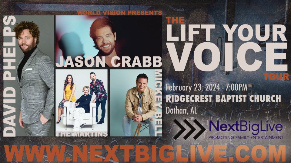World Vision Presents The Lift Your Voice Tour featuring: - David Phelps - Jason Crabb - The Martins - Mickey Bell