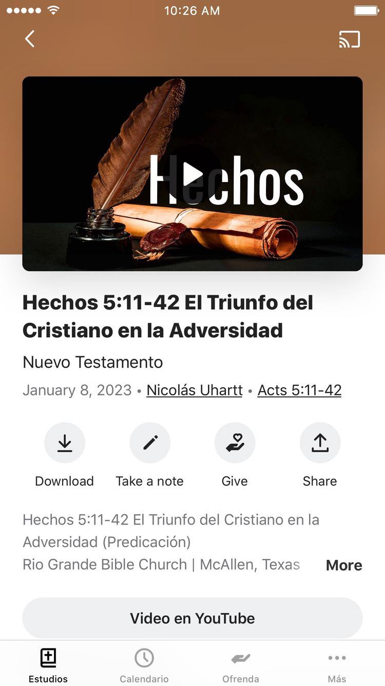 Este App de Rio Grande Bible Church tiene estudios bíblicos y predicaciones, además de otros recursos poderosos en la Palabra de D para hacer discípulos de Jesús que hacen otros discípulos. Con este App puedes crecer espiritualmente y mantenerte conectado. Incluye: - Ver y escuchar mensajes - Seguir los estud bíblicos y las guías de estudio con el método inductivo - Acceso a musica - Enterarte de eventos - Compartir tus mensajes y estud favoritos via Twitter, Facebook o email - Descargar mensajes para escucharlos después