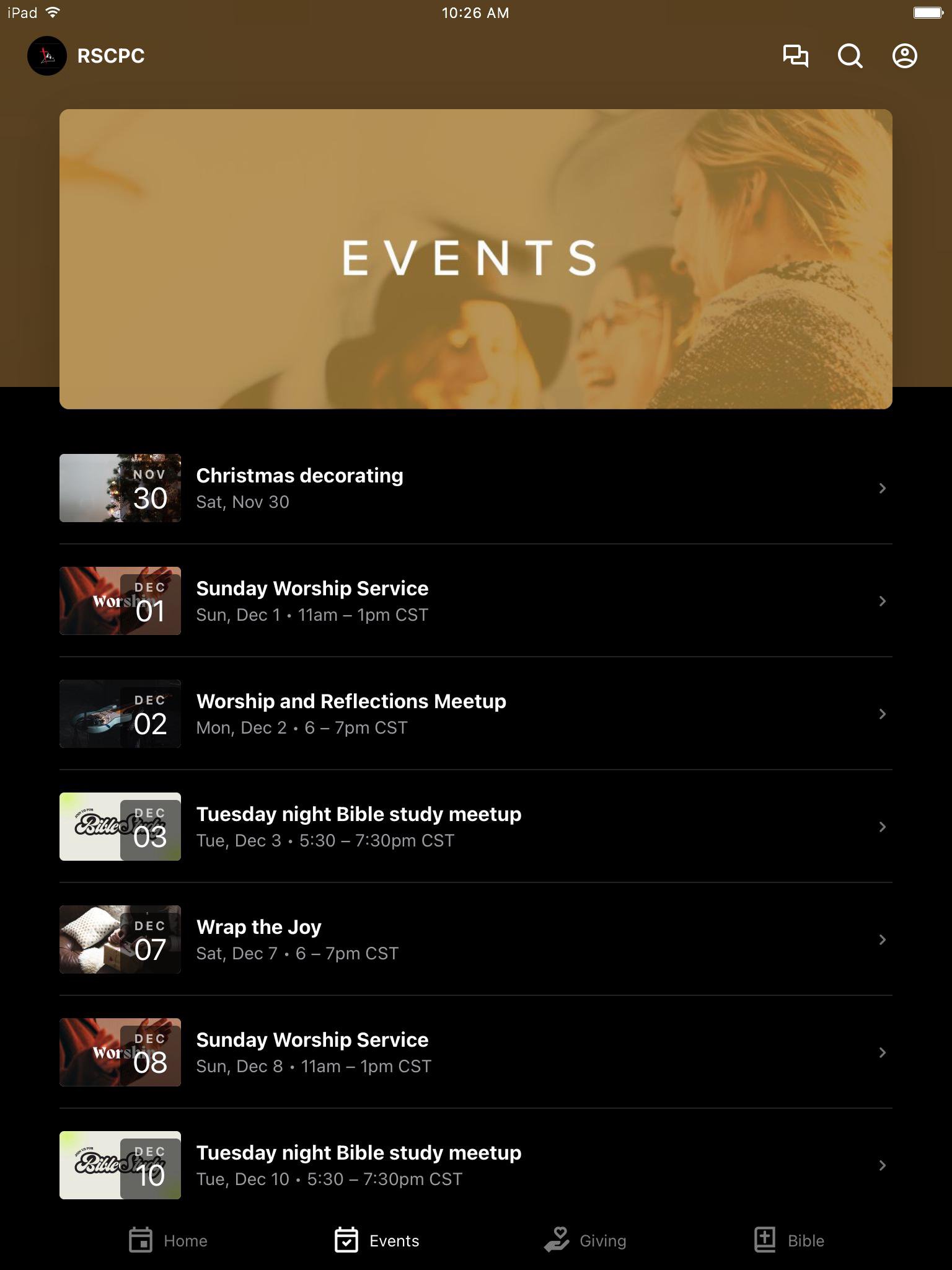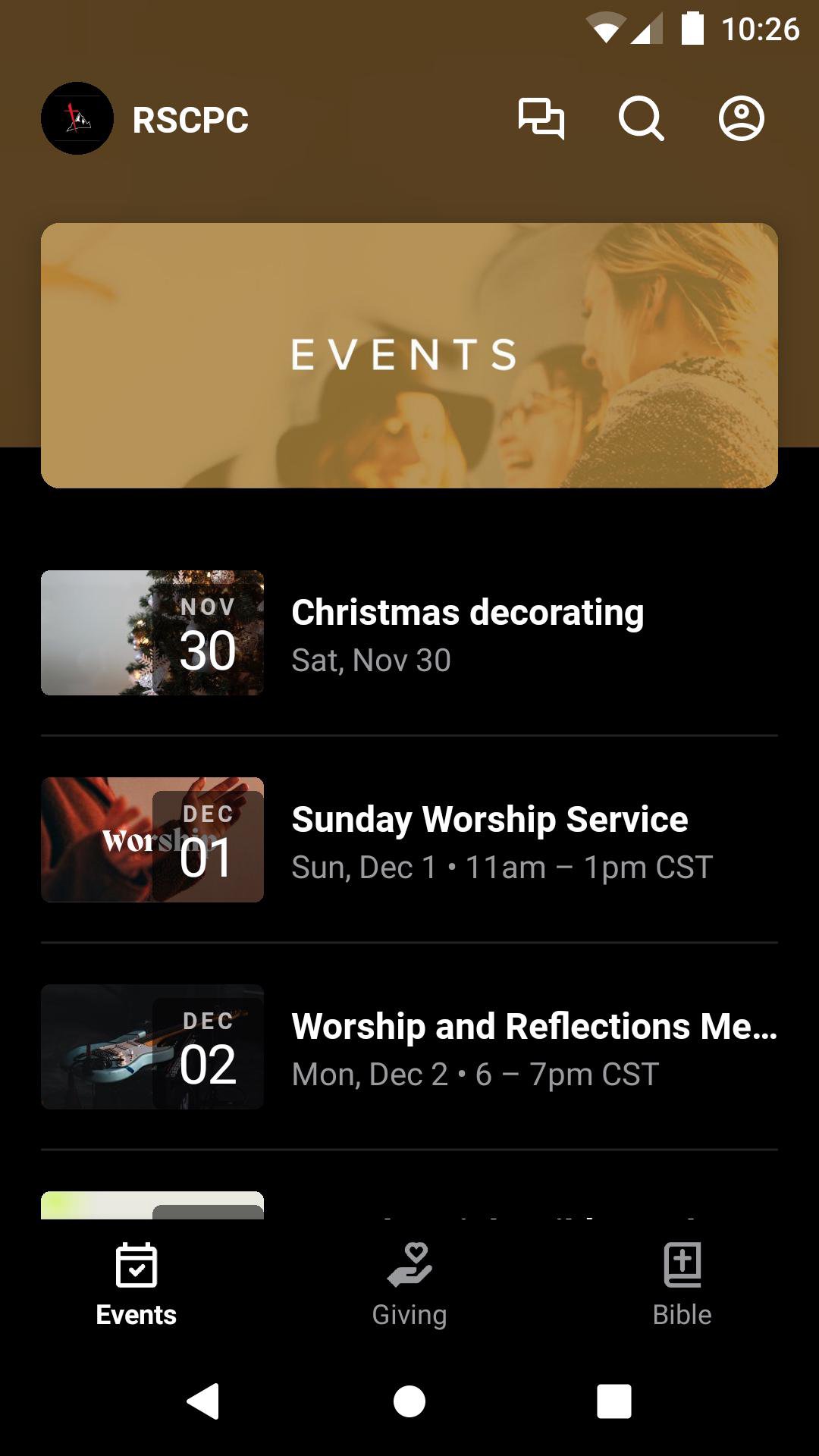 This app will help you stay connected with the day-to-day life of our church. With this app, you can watch or listen to past messages, stay updated with push notifications, read the Bible, and view our calendar.