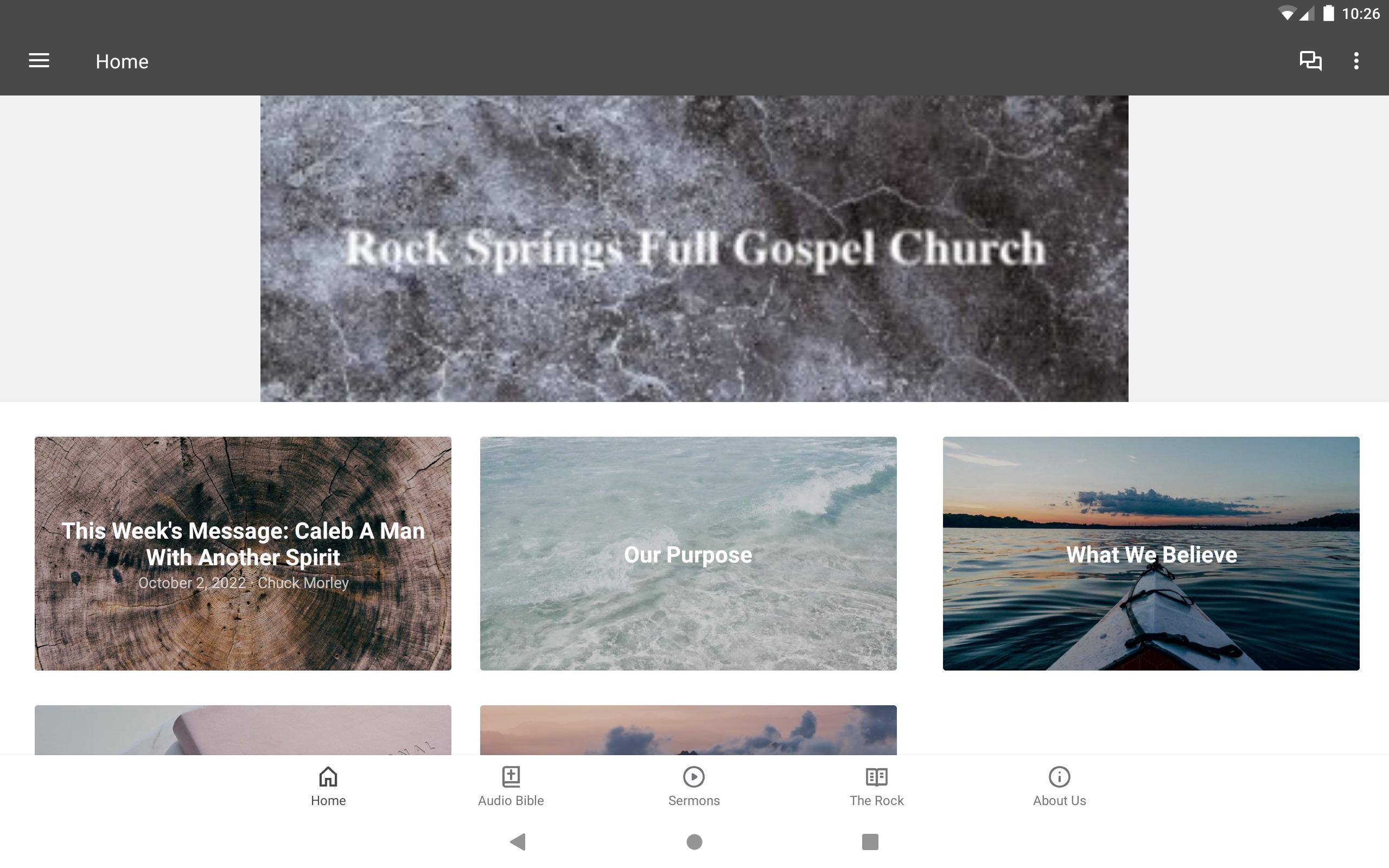 One of the first things we learned, while developing this App, was not to allow it to become just another church "internet pamphlet". If that alone was our goal, it would have been easier to have something printed for the information table in our lobby. With that in mind, it is our purpose, as with any bible believing church, to preach the Word of God to a lost and dying world, as well as the training and the encouragement of believers. The internet has afforded us a tremendous opportunity to accomplish that task. And so, we have geared our app to the preaching of the Gospel. Through the audio sermons, videos, articles, compilations, and other ministries provided on our site, we believe, that many can be born-again, and lives can be changed and enriched to the glory of Jesus Christ.
