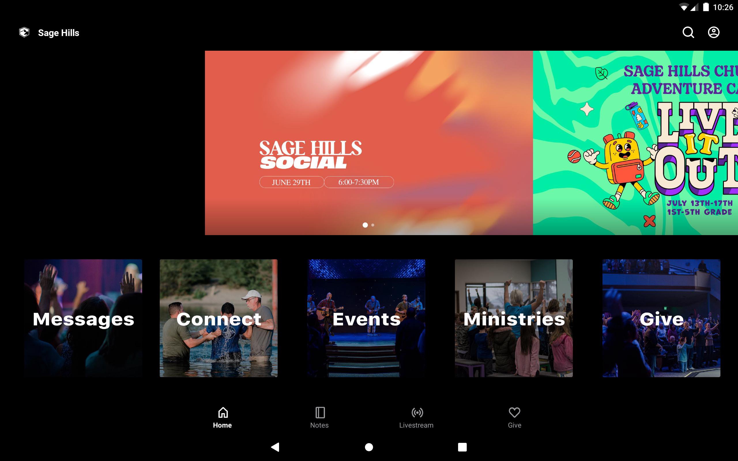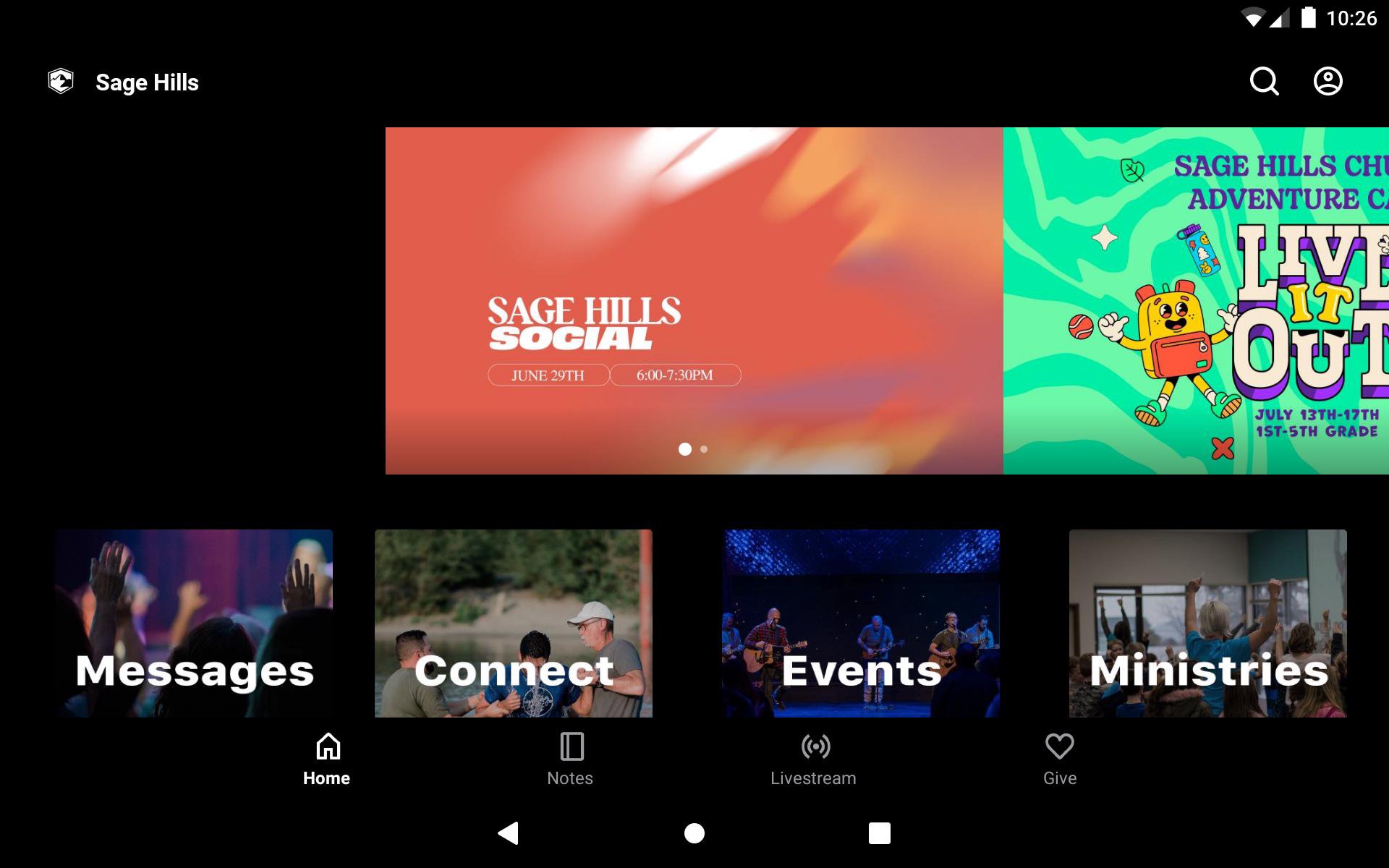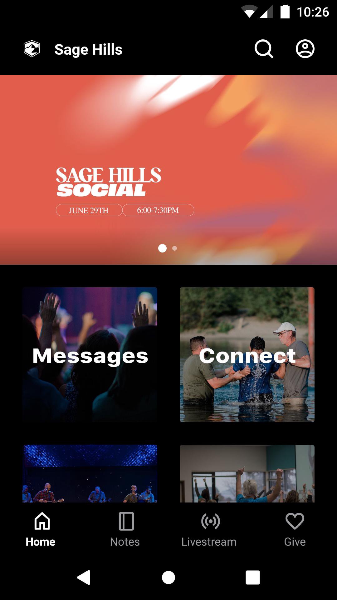 This app is packed with powerful content to help you grow and connect with Sage Hills Church. With this app you can: - Watch or listen to past messages - Watch our Sunday live stream - Sign up for events - Stay up to date with push notifications - Share your favorite messages via Twitter, Facebook, or email - Download messages for offline listening -Give online