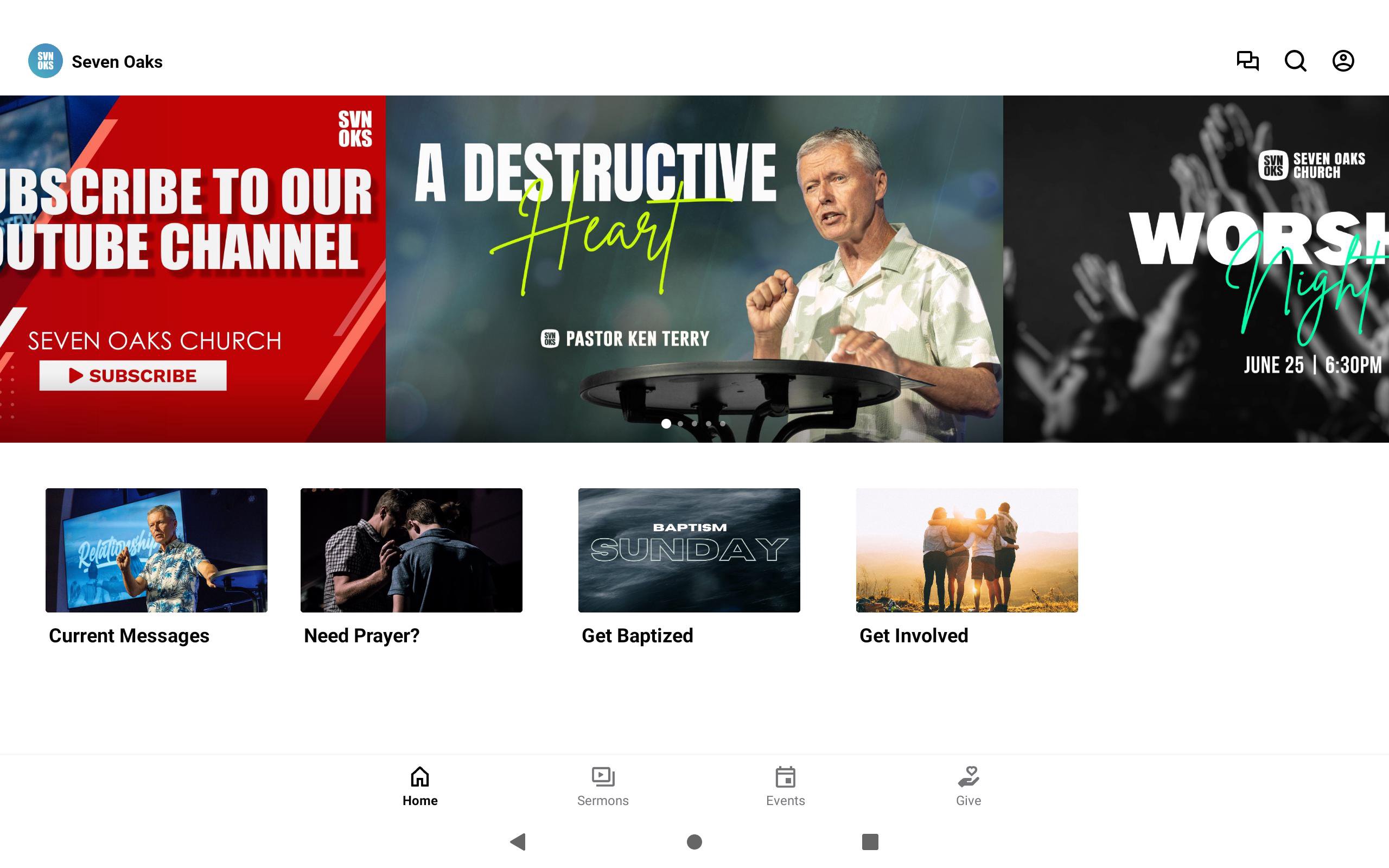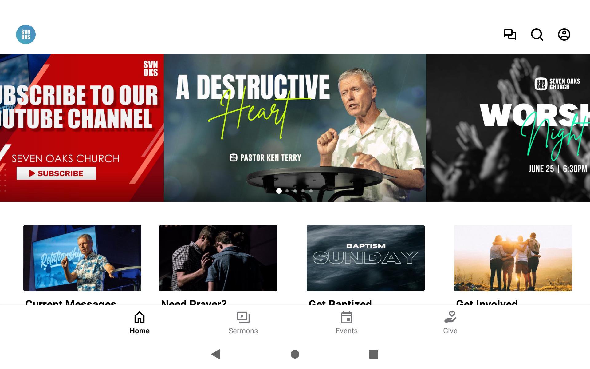 Welcome to the official app for Seven Oaks Church. Seven Oaks, specifically seven, speaks to the seven rhythms, that as Christ Followers, we are committed to living out on a daily basis. We know that prayer, daily devotions, being free of strongholds, sharing our story, celebrating life, serving our community, and giving sacrificially and generously are vital to the development of our faith and opportunity to Love, Engage, and Influence our community well, becoming “THE CORE” of our faith community. Throughout history, cultural change has occurred when real investment is made within the church, social sector, government, education, business, arts & entertainment, and media. As the local church, we seek to advance the gospel through these seven channels of culture. Because we know and love Jesus, we are committed to seeking cultural change within each channel represented in our neighborhoods, greater community, the nation, and world to reach those who do not know God or are far from God. As Seven Oaks Church and as followers of Christ, we recognize it is our responsibility to live out the seven rhythms within the seven channels of culture, actively demonstrating what it means to love and be loved by Christ. Build community and stay connected through the app. - Listen to our weekly services... LIVE! - Follow along with our built in Bible App - Stay up to date with push notifications - Share your favorite messages live via Twitter, Instagram, Facebook, and email. - Download messages for offline listening