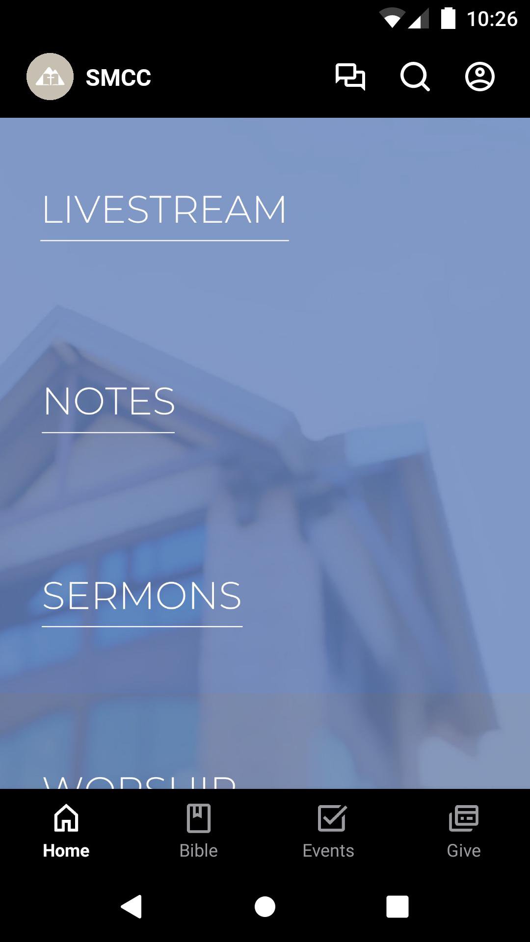 The SMCC app is filled with powerful content and resources to enrich your daily walk with the Lord. Connecting with your church has never been easier! With this app you can: - Stream our Sunday service - Revisit previous sermons - Listen to our worship playlist - Read the latest newsletter - Check out our podcasts - Follow our Bible reading plan - Share or download media - Register and pay for events - Make a secure gift