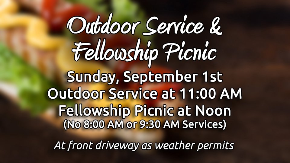 Join us Sunday, September 1st for an Outdoor service at 11:00 AM, followed by a fellowship cookout in the front of the church.