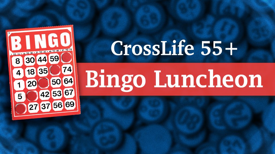 The CrossLife 55+ May luncheon is scheduled for Thursday, May 14, at noon in the gym. The program is BINGO! Boxed meals from Chick-Fil-A will be served, offering a choice of either an original sandwich with chips and a cookie or a market salad with crackers and a cookie. There will be prizes! Cost: 12/person