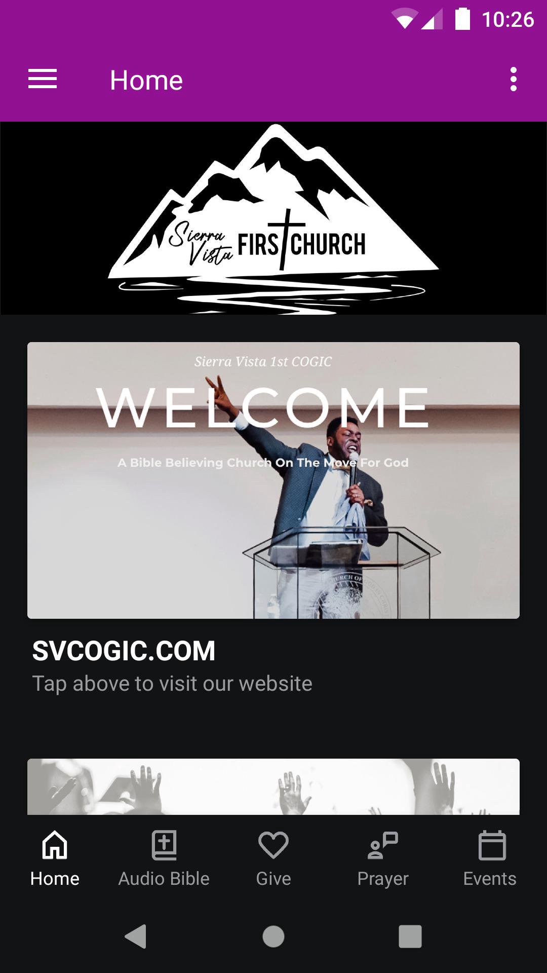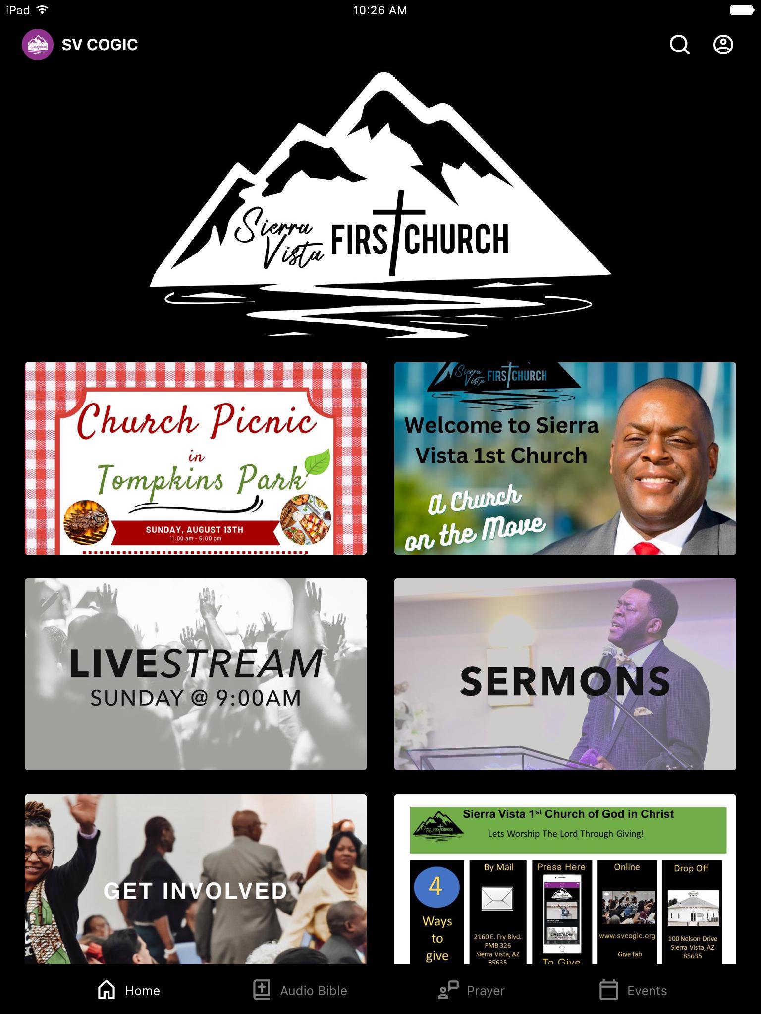 Sierra Vista 1st Church of God in Christ located in Sierra Vista, Arizona This app will help you stay connected with the day-to-day life of our church. With this app you can: - Watch or listen to past messages - Stay up to date with push notifications - Share your favorite messages via Twitter, Facebook, or email - Download messages for offline listening