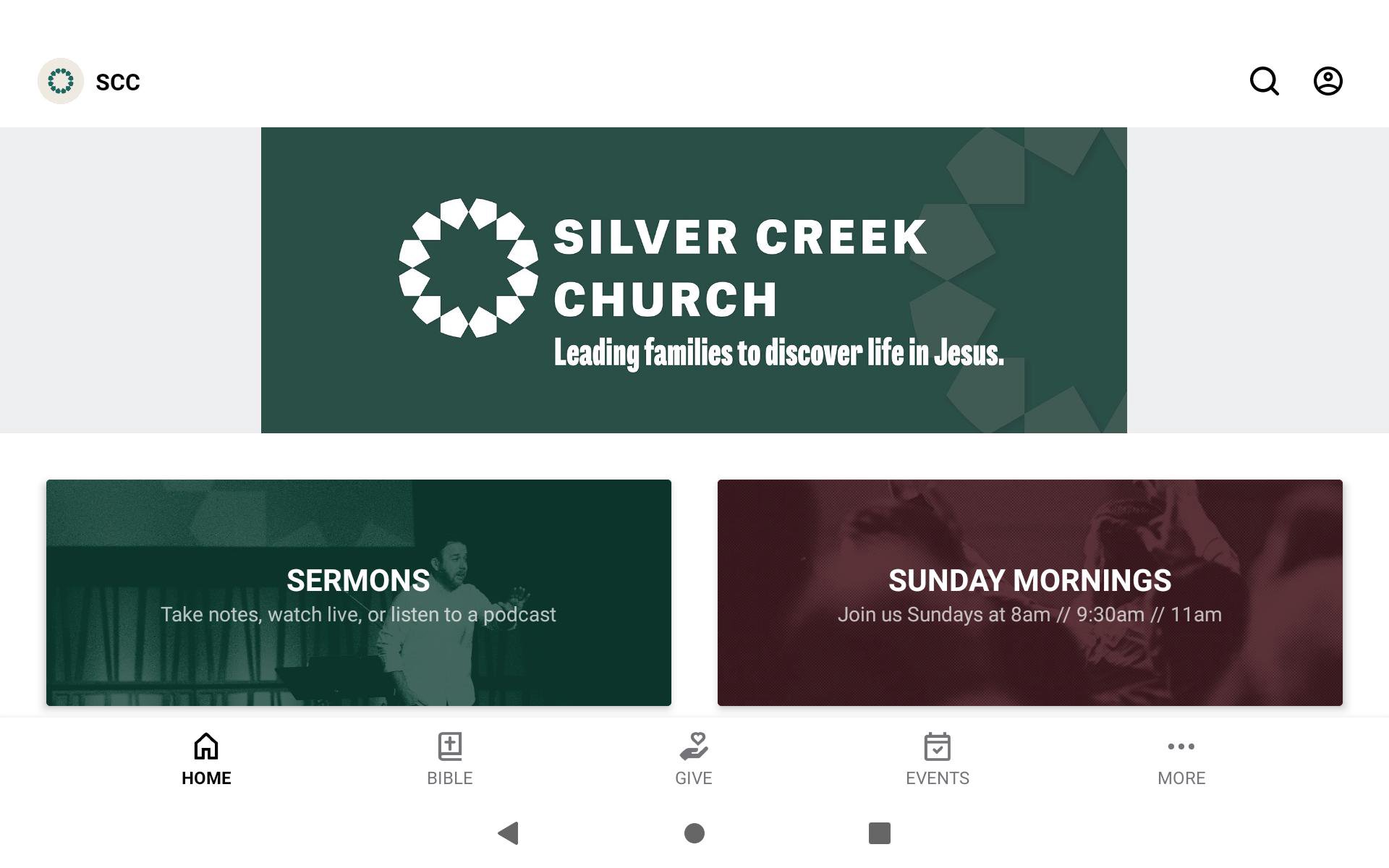 This app will help you stay connected to Silver Creek Church. With this app you can: watch or listen to past messages; stay up to date with push notifications; see and sign up for upcoming events; share content with others; contact our staff and more.