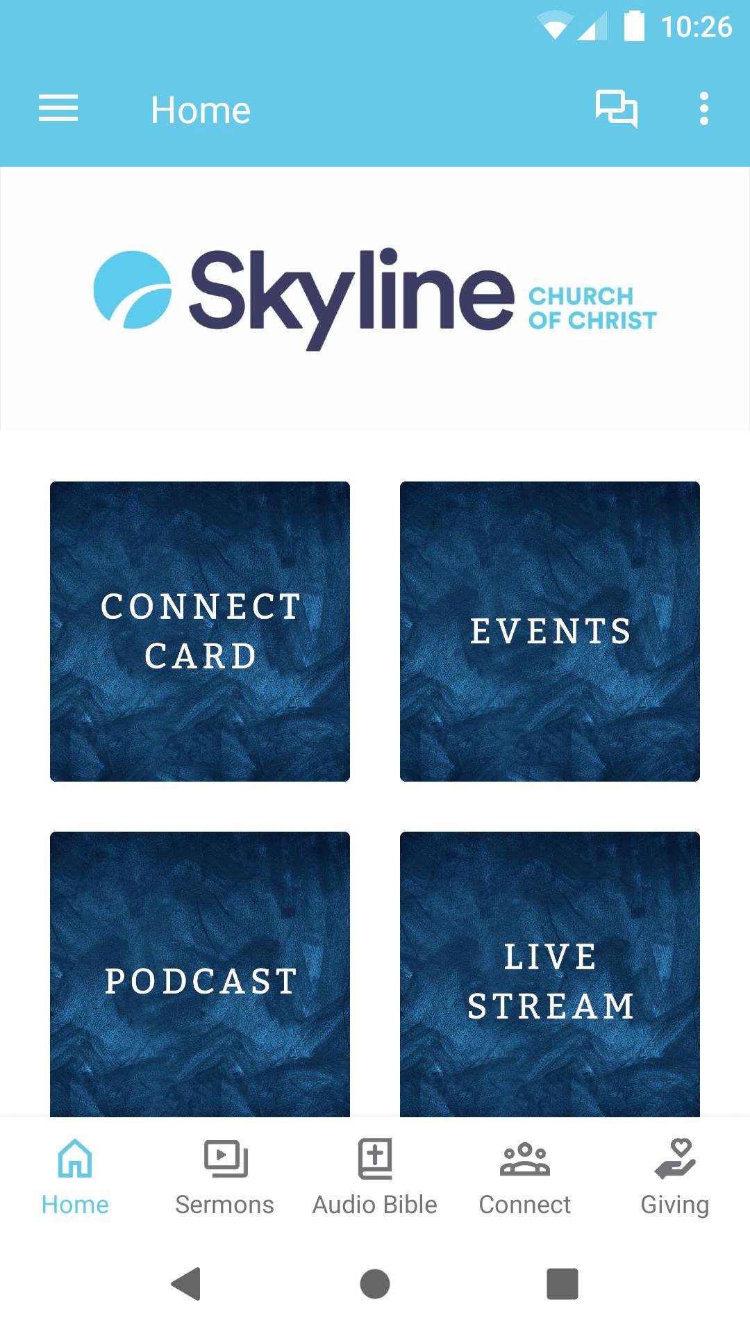 This app will help you stay connected with the day-to-day life of Skyline Church. With this app you can: watch or listen to past messages; stay up to date with push notifications; share your favorite messages via Twitter, Facebook, or email; and download messages for offline listening.