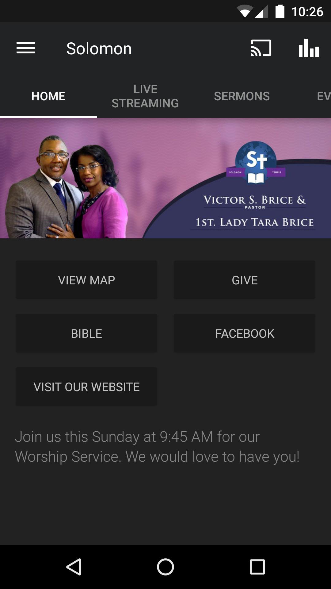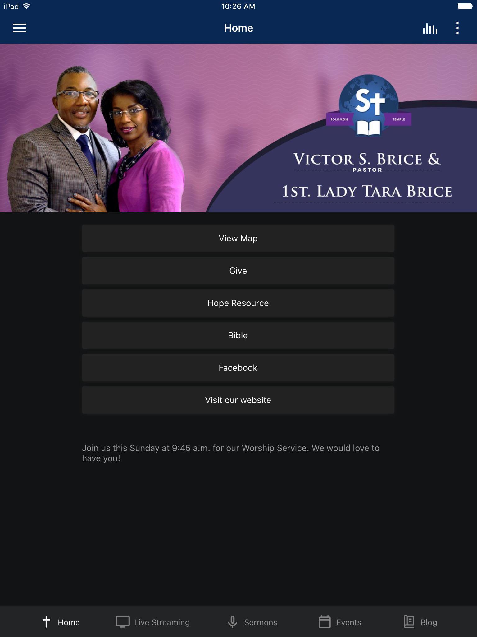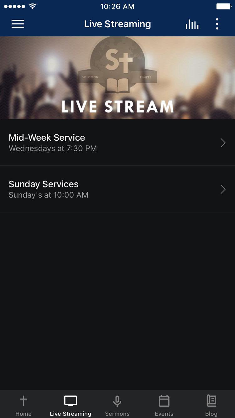 Welcome to the official app for Solomon Temple Ministries! You can enjoy sermons, video, live church streaming, blogs and more! We would love to have you be a part of our community. Download our app today to learn more about us. WiFi internet is required for touch. For more information about Solomon Temple Ministries, please visit: SolomonTempleMinistries.org . The Solomon Temple Ministries App was created with the Subsplash App Platform.