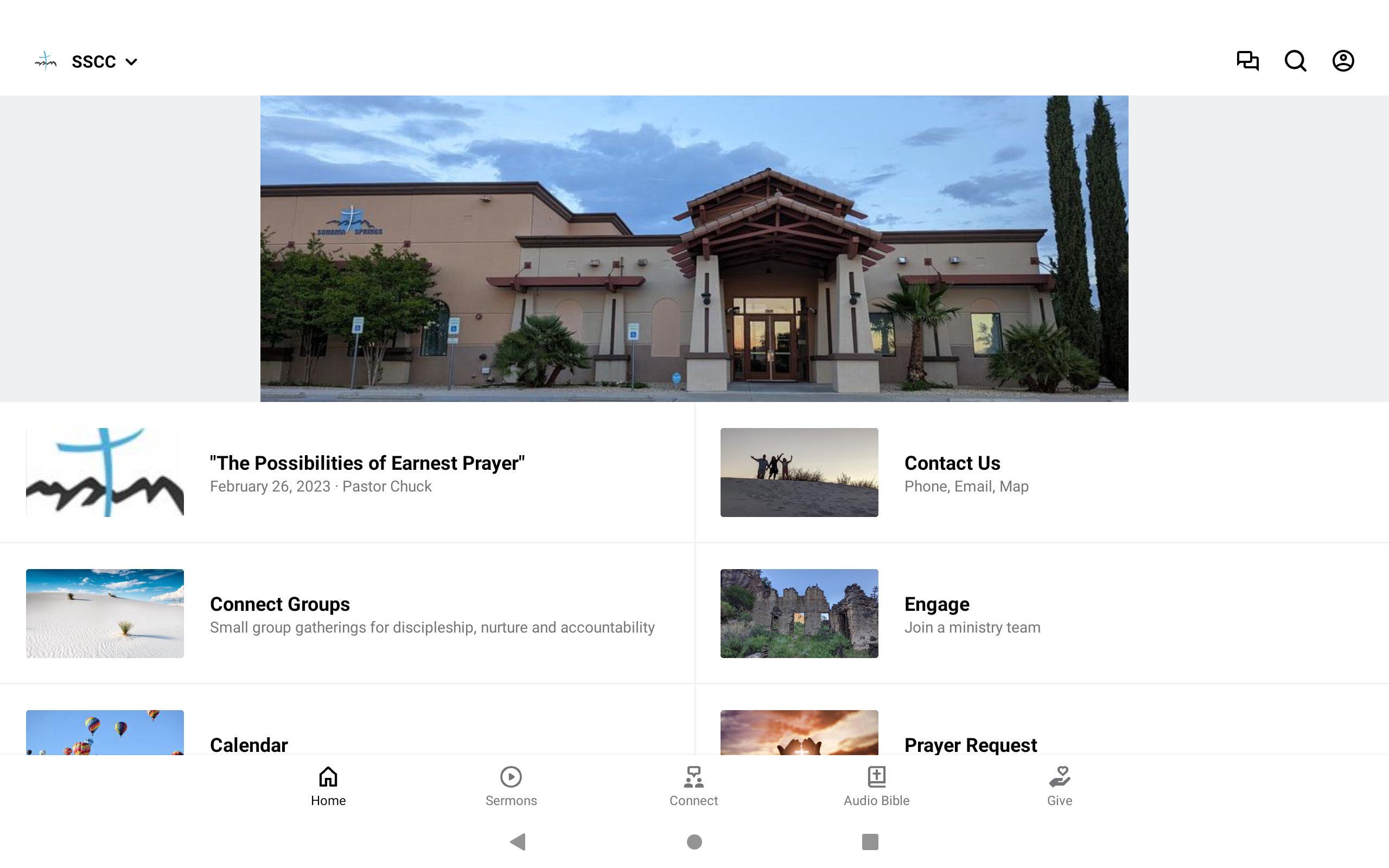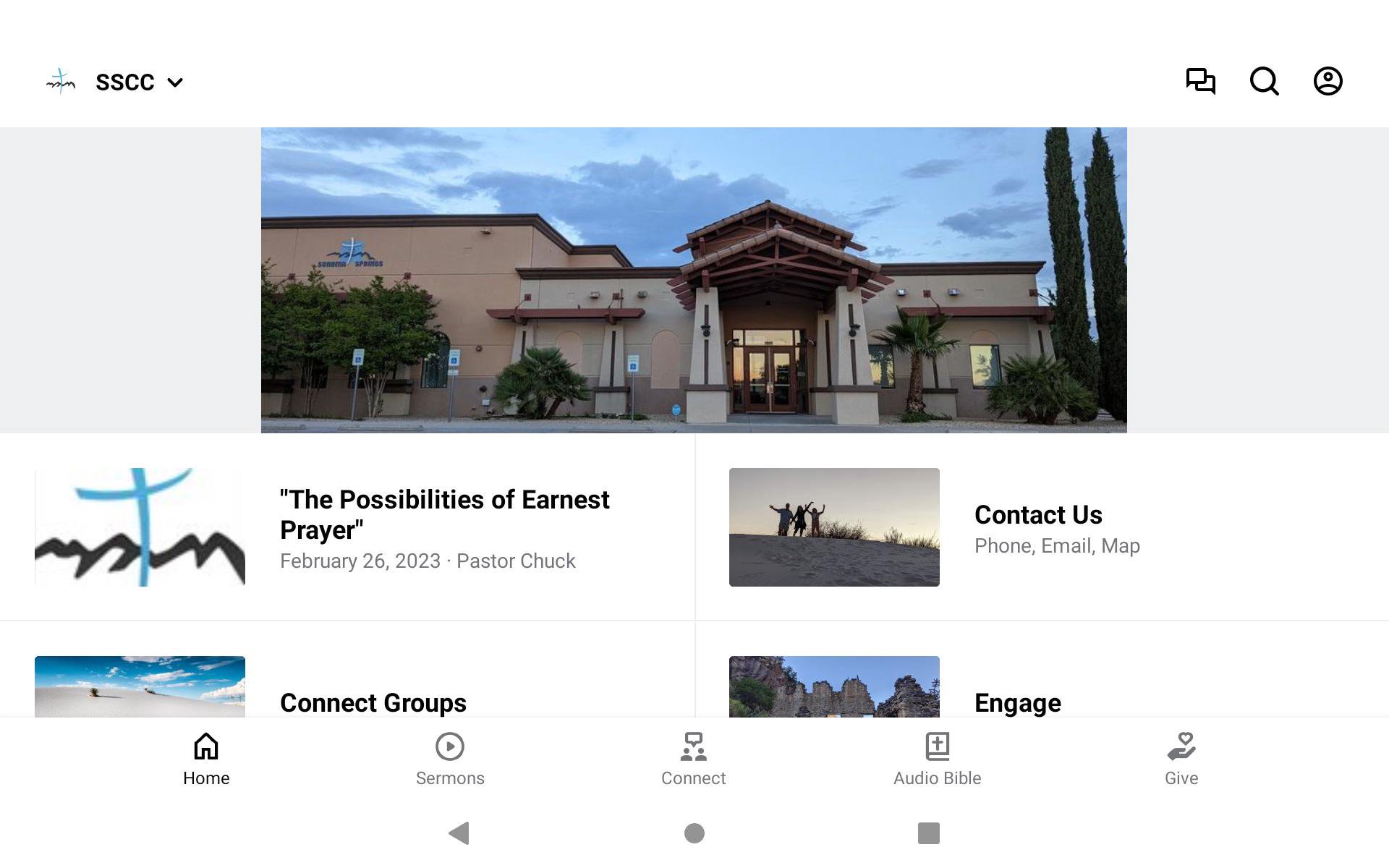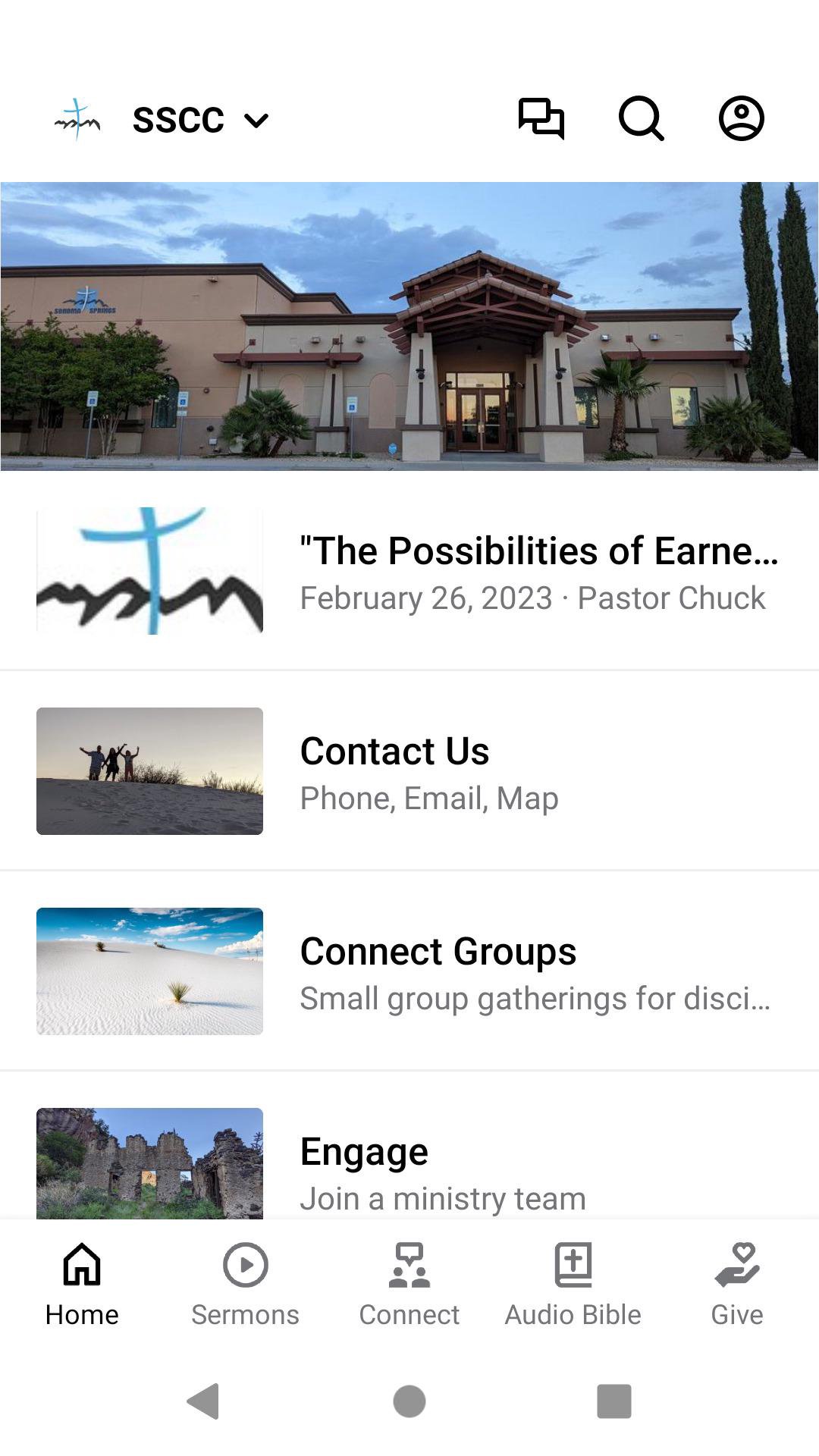 This app will help you stay connected with the day-to-day life of our church. With this app you can: watch or listen to past messages; stay up to date with push notifications; share your favorite messages via Twitter, Facebook, or email; and download messages for offline listening.