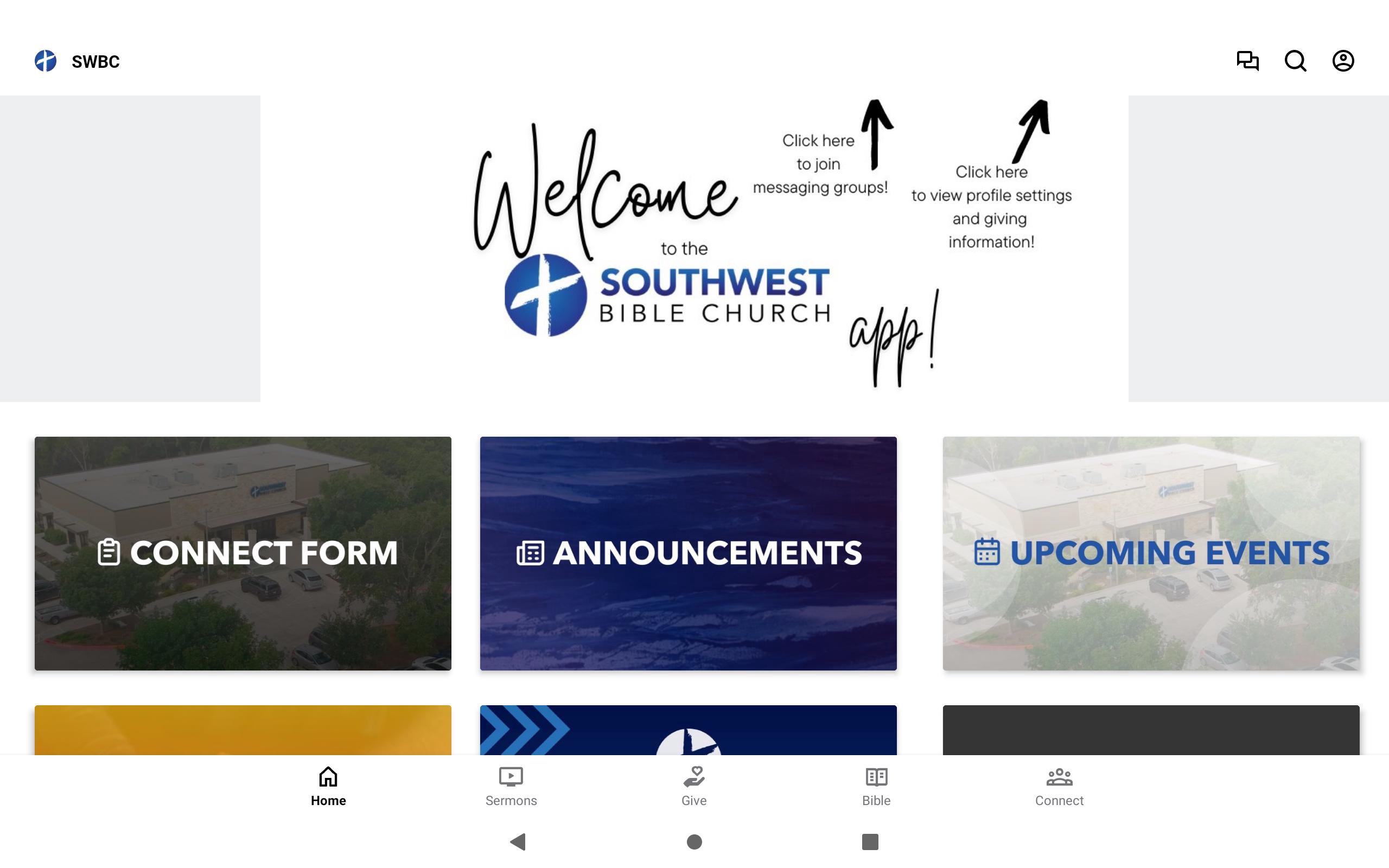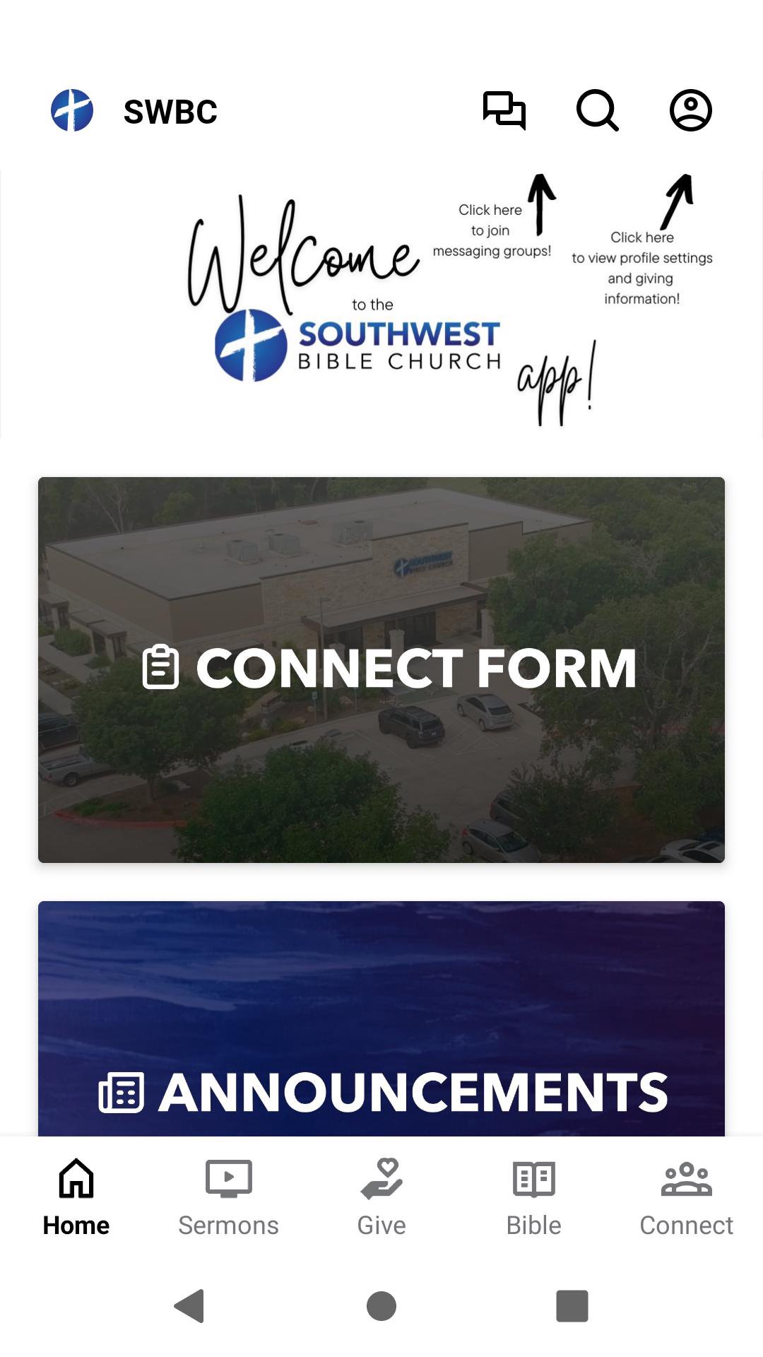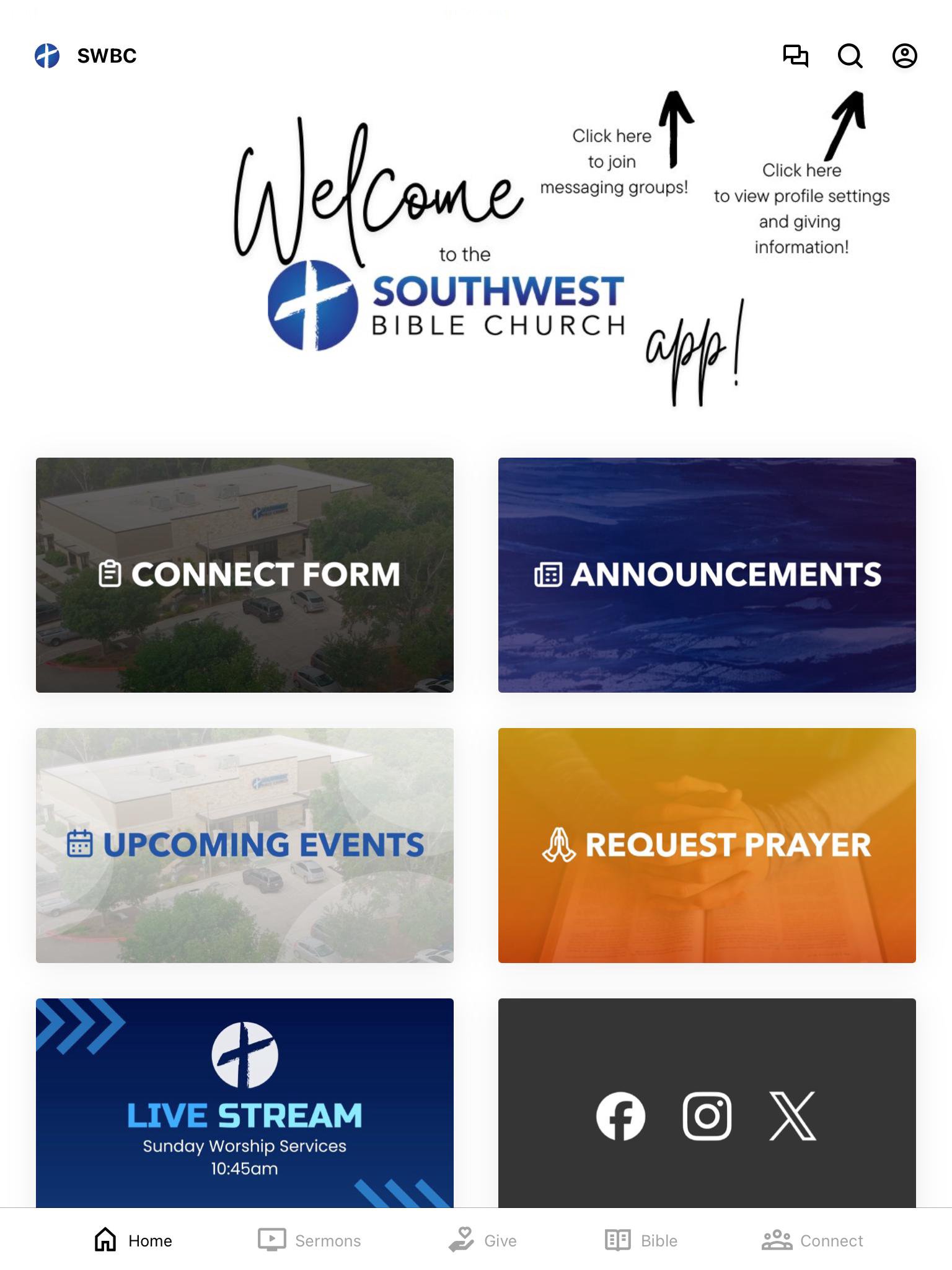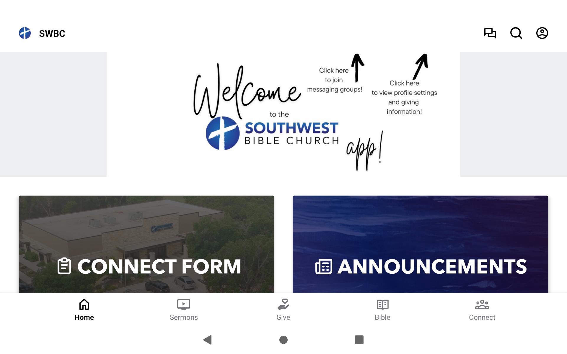 This app will help you stay connected with the day-to-day life of our church. With this app you can: watch or listen to past messages; stay up to date with push notifications; share your favorite messages via Twitter, Facebook, or email; and download messages for offline listening.