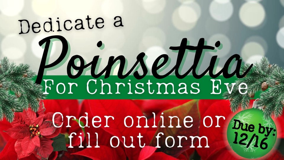 Payments can be made via cash or check- place in offering basket - marked Poinsettia Dedications - or drop off to church office.