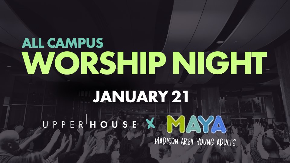Join us for an All-Campus Worship Night— with a twist! We're coming alongside Madison Area Young Adults (MAYA) to pray for our campus and local ministry leaders. Invite a friend and get ready to join in worship with other believers and exalt the name of Jesus over Madison.