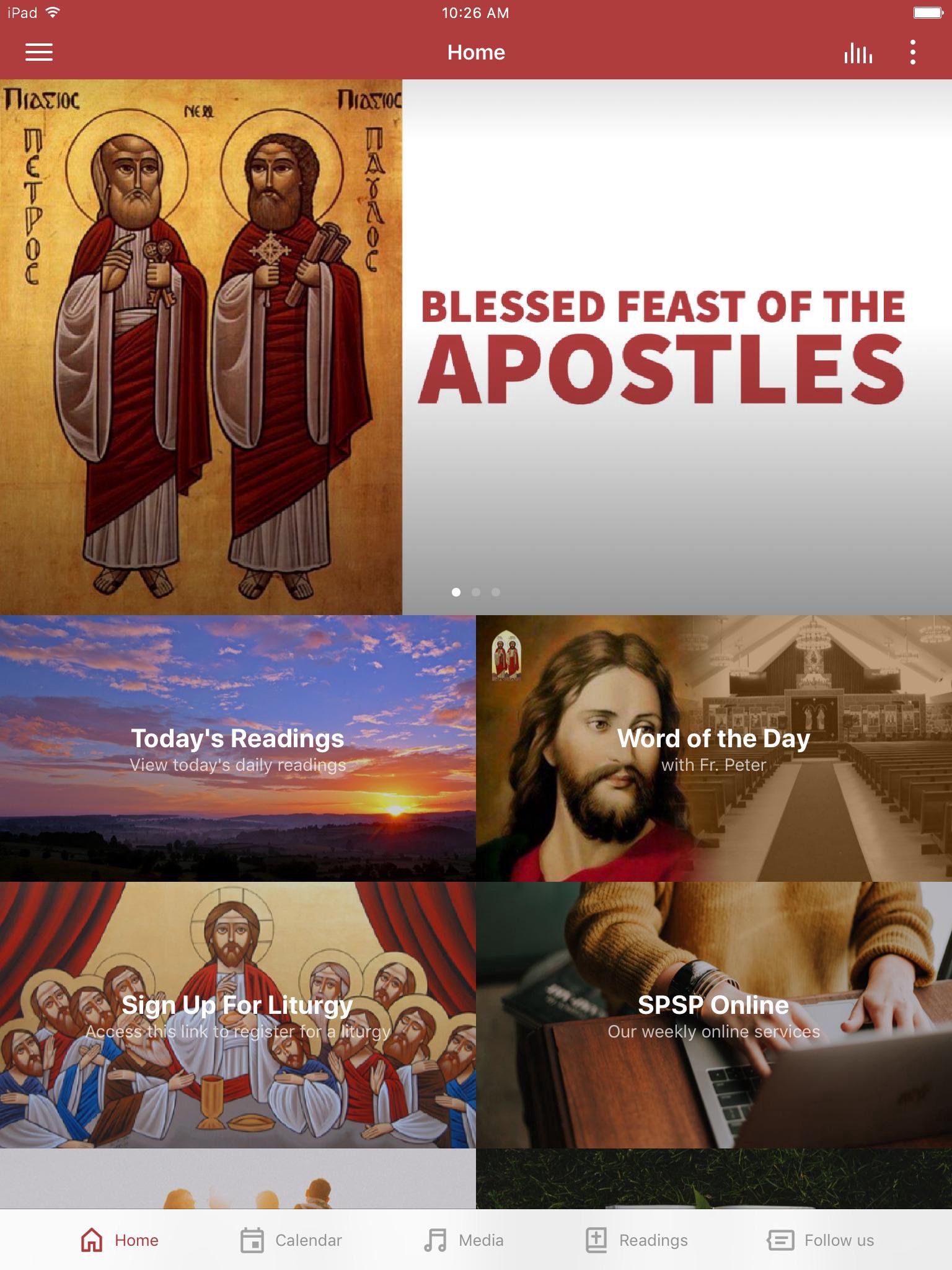 This app will help you stay connected with Saint Peter & Saint Paul Coptic Orthodox church in Montreal With this app you can: - Stay up to date with the church schedules & upcoming events. - Watch or listen to Spiritual Word of the Day and Weekly Sermons. - Receive push notifications. - Sign up to volunteer for any of the different church services and programs. - Stay connected with What’s New at our church. - Check out all of our interesting content and share it with friends via Facebook, Twitter and email.
