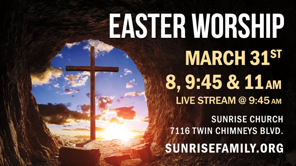 Join us for any of our three worship services on Easter Sunday. Childcare (infant through 4 years old) is available at the 9:45 and 11 am services. There will be no SunKids but fun Easter activites for the older kids to do in worship. SEEDS Children's Choir will be singing at the 11 am service as well. Live stream @ 9:45 am.