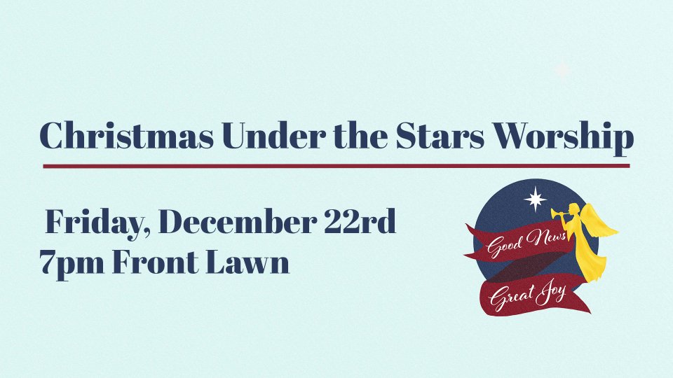 Gather with us outside on Friday, Dec. 22nd at 7pm our front lawn for night-time worship featuring contemporary and traditional music. Bring your own chair or blanket!