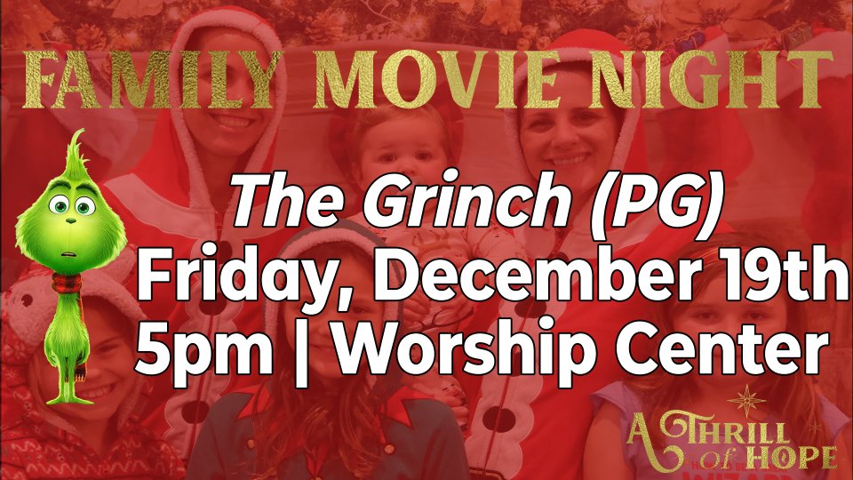 Grab your favorite pair of pjs, a comfy blanket, and join us for a Pajama Movie Night from 5pm - 7pm in the Worship Center. We’ll have a popcorn bar with lots of mix-ins and an interactive lesson as we watch the 2018