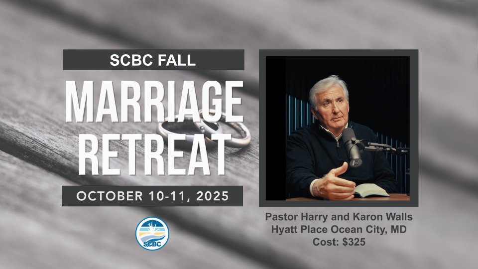 Hello SCBC family. We are looking forward to our 2025 Fall Marriage Retreat this October 10-11. Please take a moment to watch the video above for the latest details and registration information. Please click the link below and register by April 11th to reserve your spot today (No charge to reserve). A $100 deposit is due by May 30, and the balance of $225 is due by August 15th. If you have questions please see Ruth Drummer.